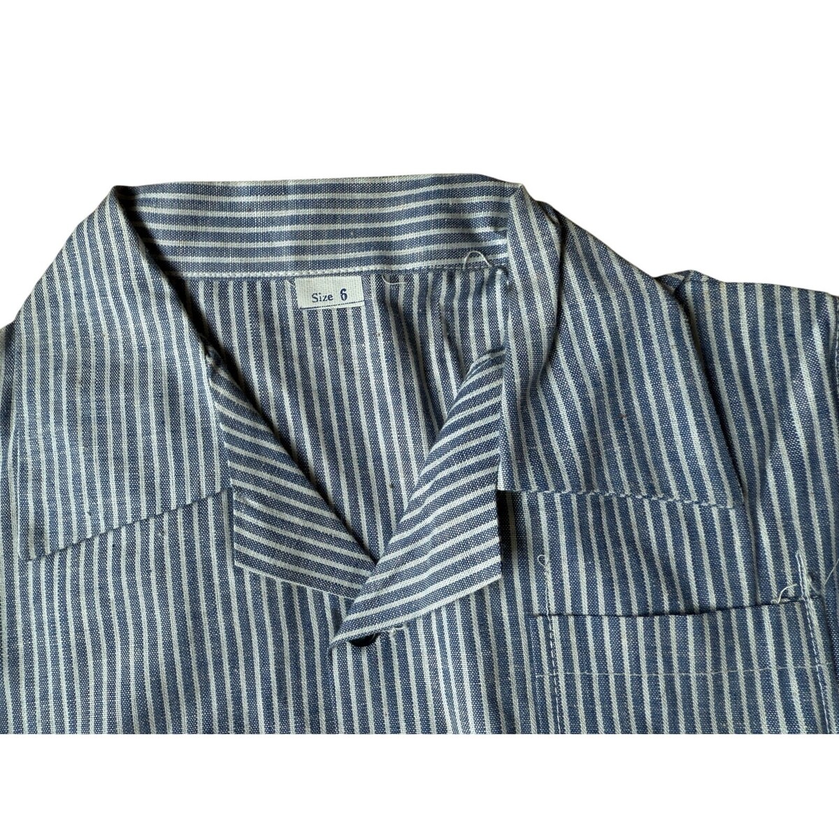 This unworn, two-piece set is a true time capsule. The outfit features a crisp blue and white striped shirt that buttons directly into the matching shorts, creating a neat, put-together look. The shorts have a classic belted waist, a distinctive detail of the era. Both pieces are made from 100% cotton, a testament to the natural materials and quality craftsmanship of the period. Owning this suit isn't just about vintage fashion; it's about holding a piece of history from a general store with a presidential past, as highlighted by the show's hosts.