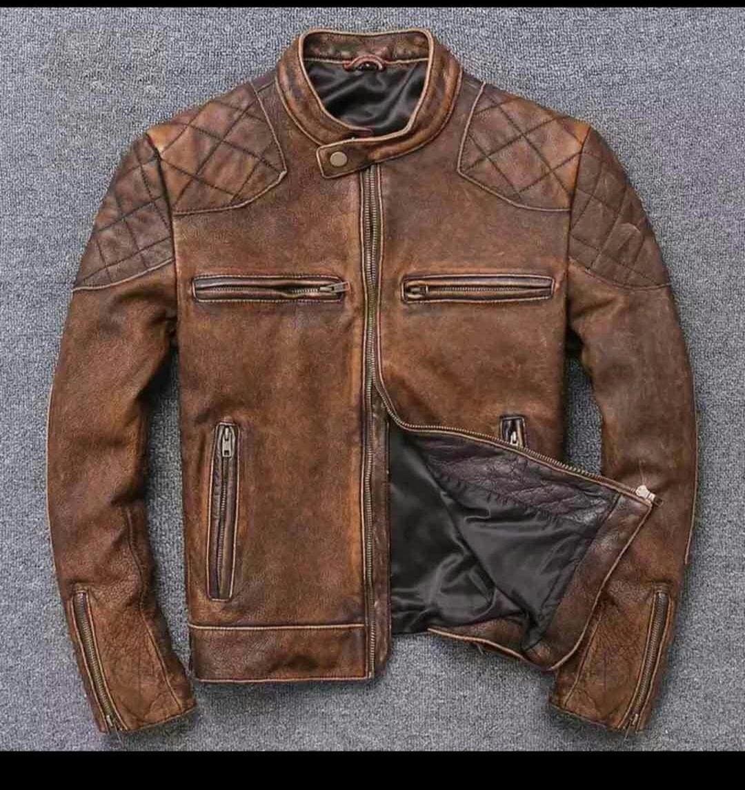 Distressed Sheep Leather Jacket Zipper Closure Custom Made