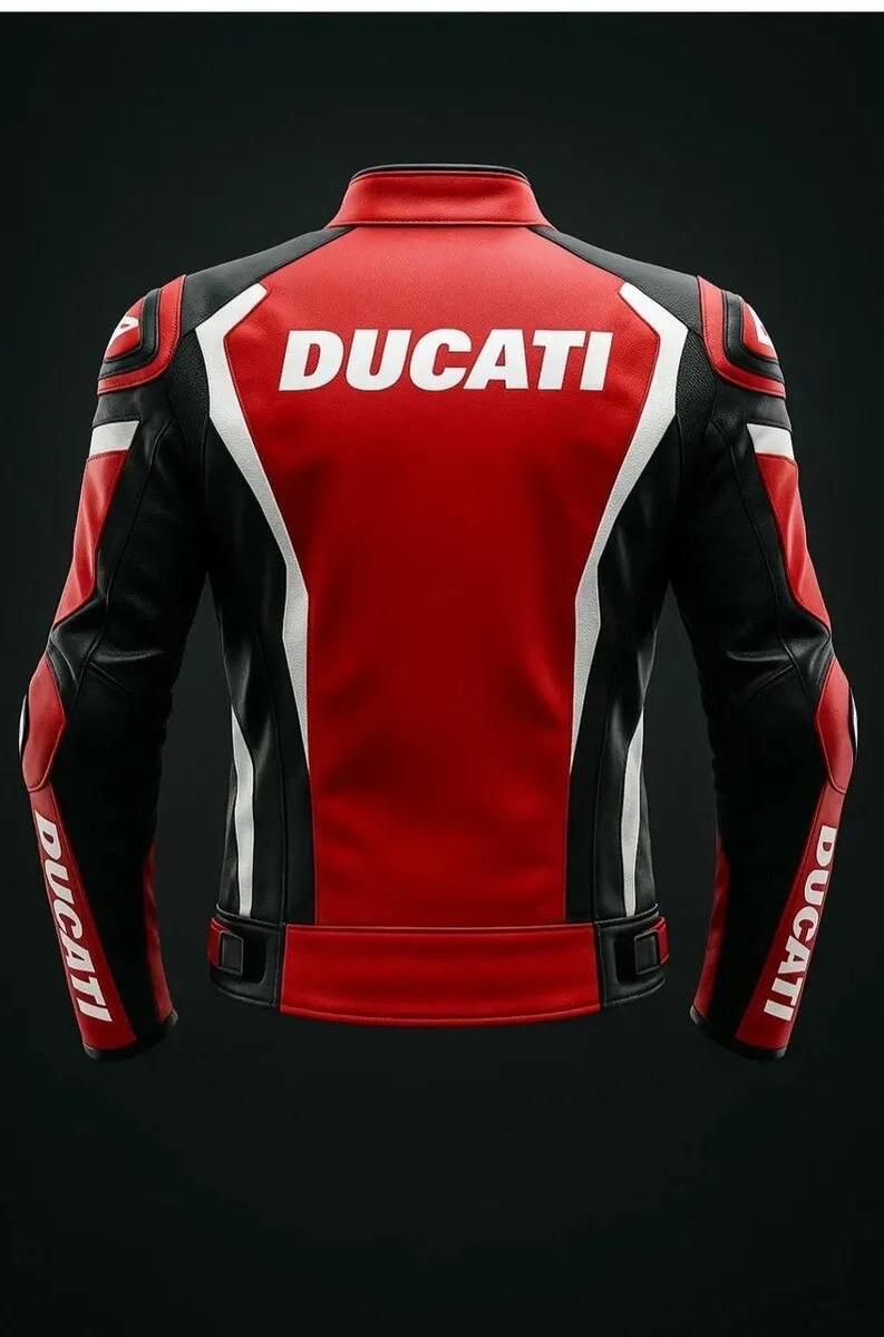 Red, Black White Ducati MotoGP-Inspired Motorcycle Racing Leather Jacket