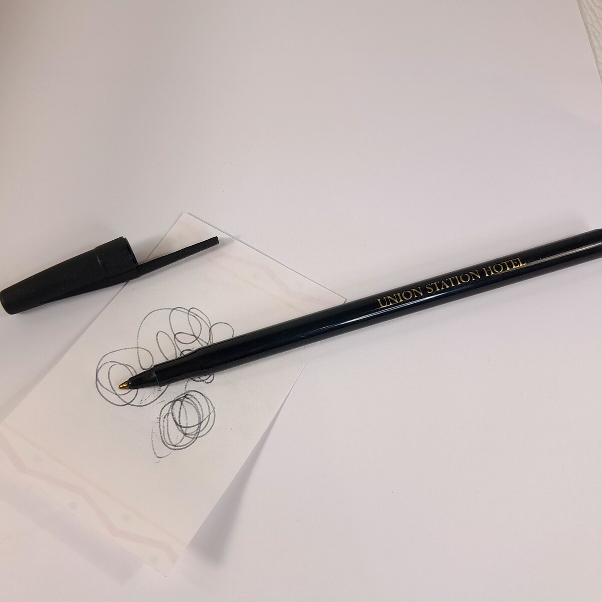 Union Station Hotel pen ballpoint black gold with cap advertisement collectible