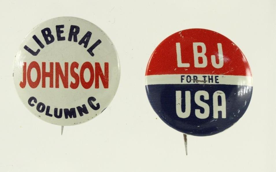 Vintage Political Pinback Campaign Button LBJ for USA Liberal Johnson Column C. Crisp. Direct from a local estate. Overall good condition from smoke and pet free environment. They measure 1" across.