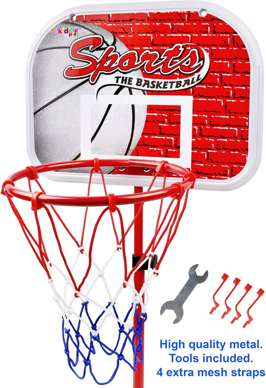 Durable Construction - The use of durable plastic for the base and solid metal for the stand and hoop suggests that the product is built to withstand the rigors of children's play.