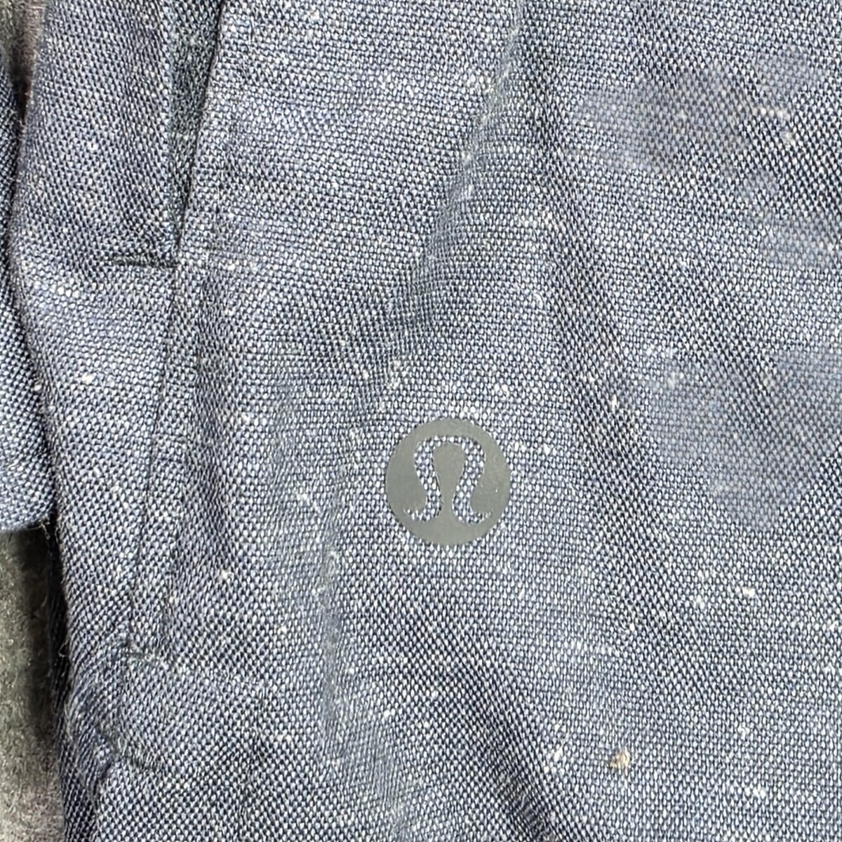 Material tag not visible, but typical for Lululemon casual woven shirts: stretchy, lightweight, and moisture-wicking poly blend.