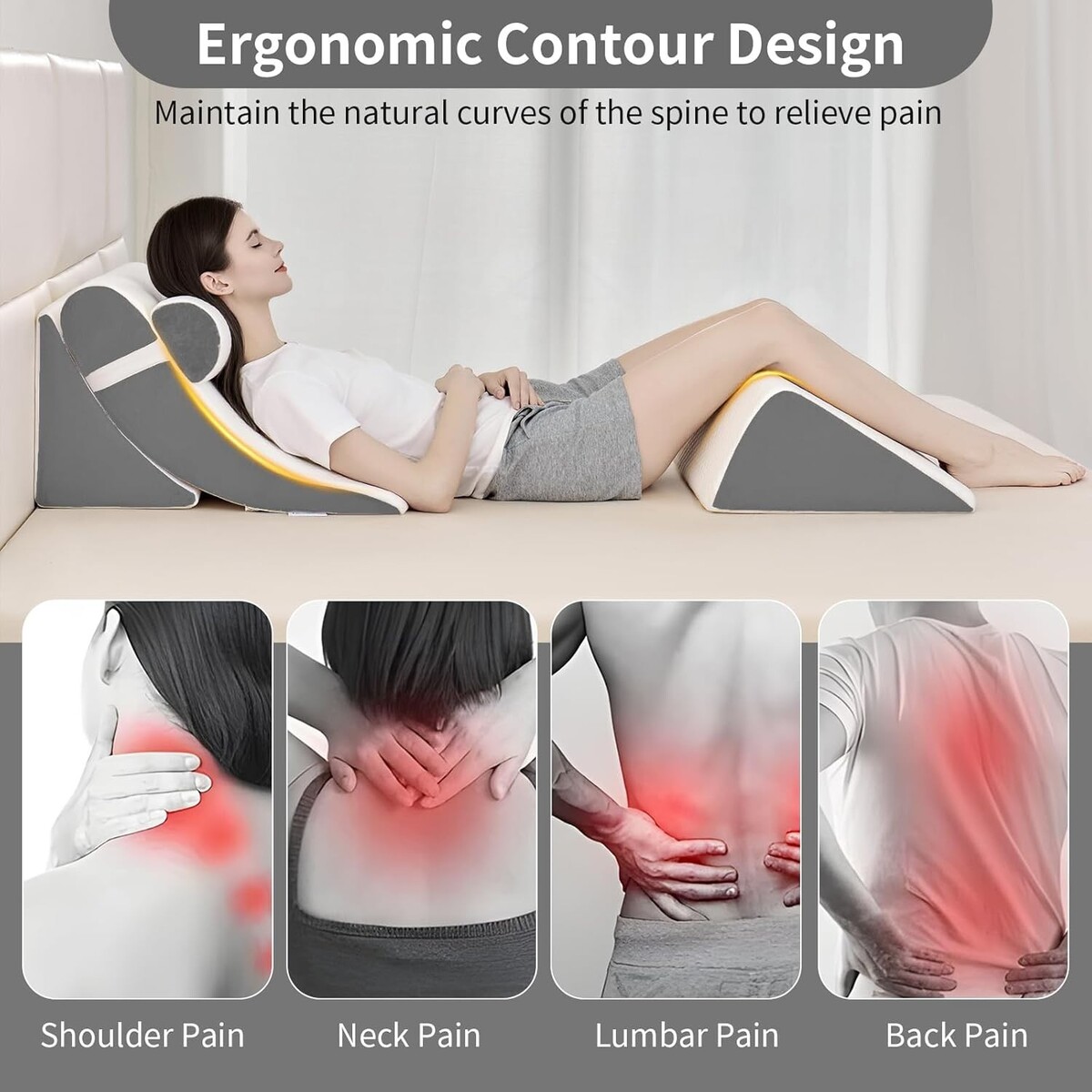 Ergonomic Pain Relief Design: Alleviates back, neck, and knee pain, ideal for post-surgery recovery, GERD, acid reflux, and snoring. Promotes spinal alignment and evenly distributes pressure.
