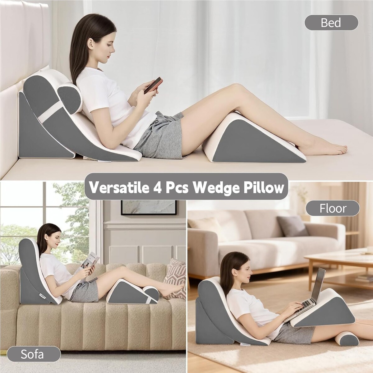 Versatile 4PCS Adjustable Bed Wedge Pillow Set for Comfortable Sleep & Sitting