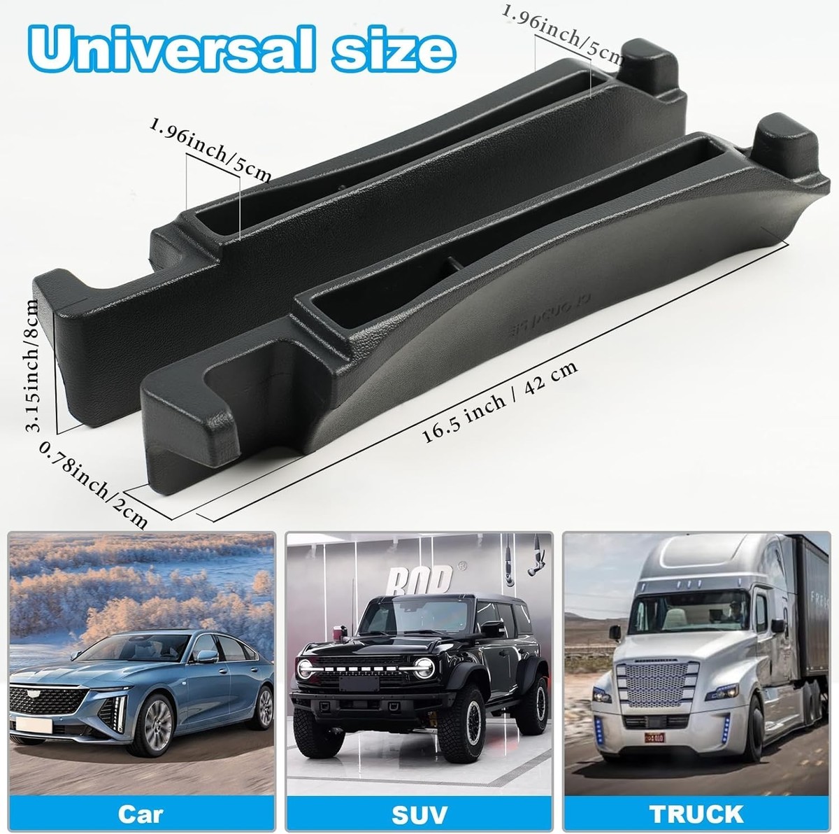 Prevents items from dropping into the gap between car seats and center console.