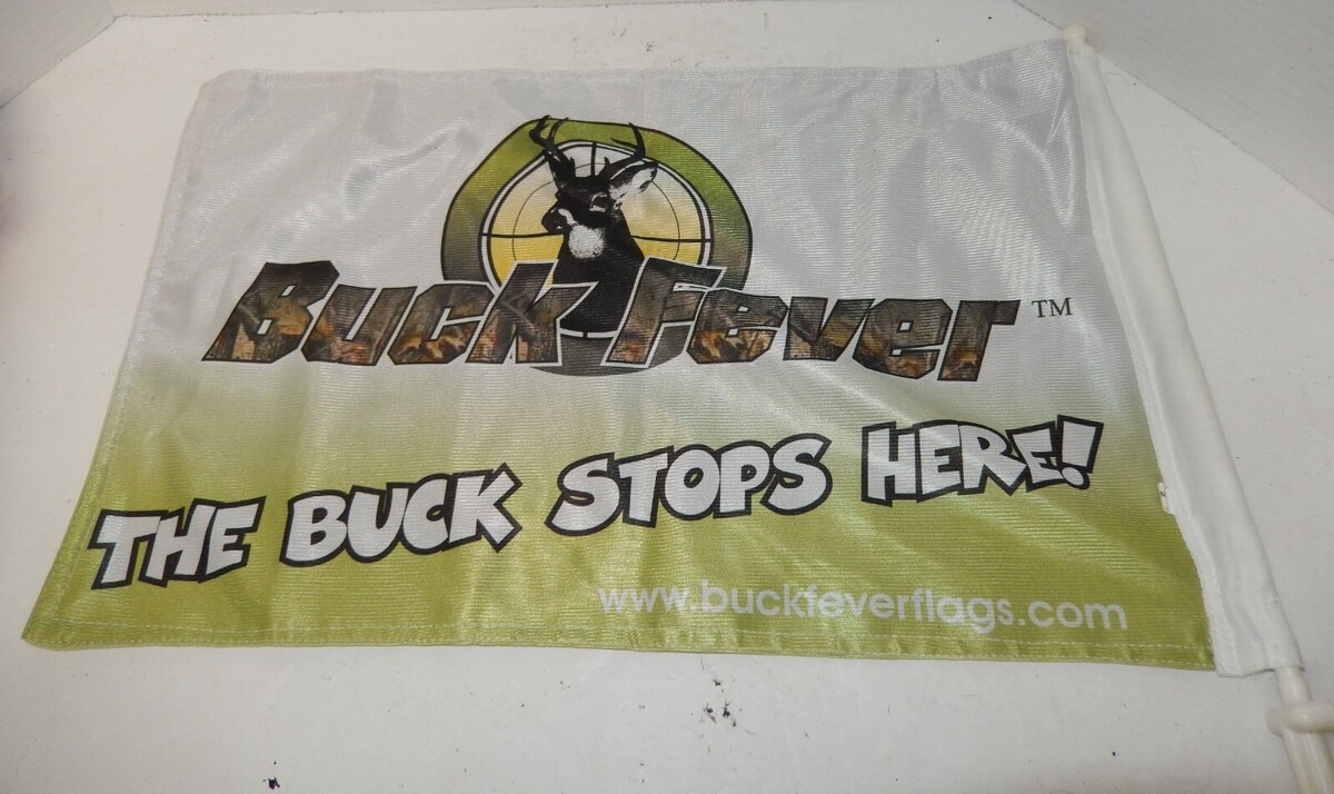 For Sale is a Buck Fever "The Buck Stops Here!" Deer Hunting Car Window Flag. Its In good used Condition with Some Minor Handling wear as pictured. Please ask Any and All Questions prior to purchasing. Fast Same or Next day shipping with Free Delivery Confirmation within the U.S. Payment Due within 7 days of purchase (if you need more time please let us know In advance) we love to combine shipping is always a Yes and Most of the time Additional Items Ship for free.
