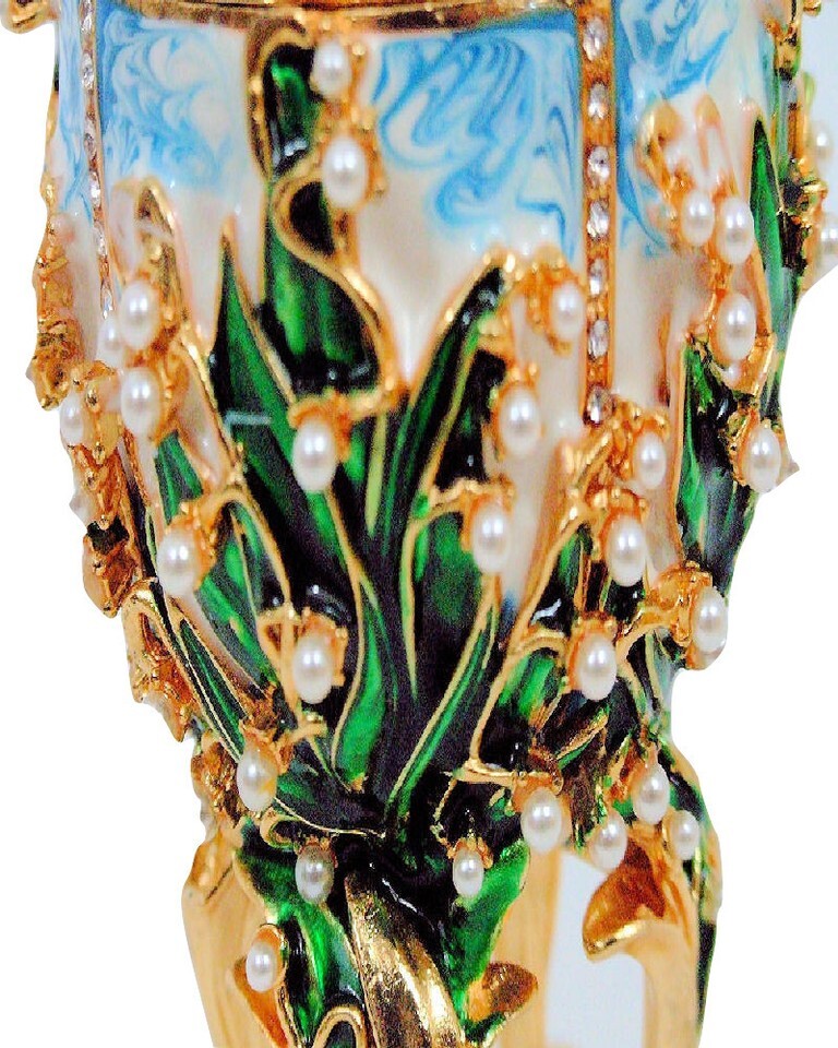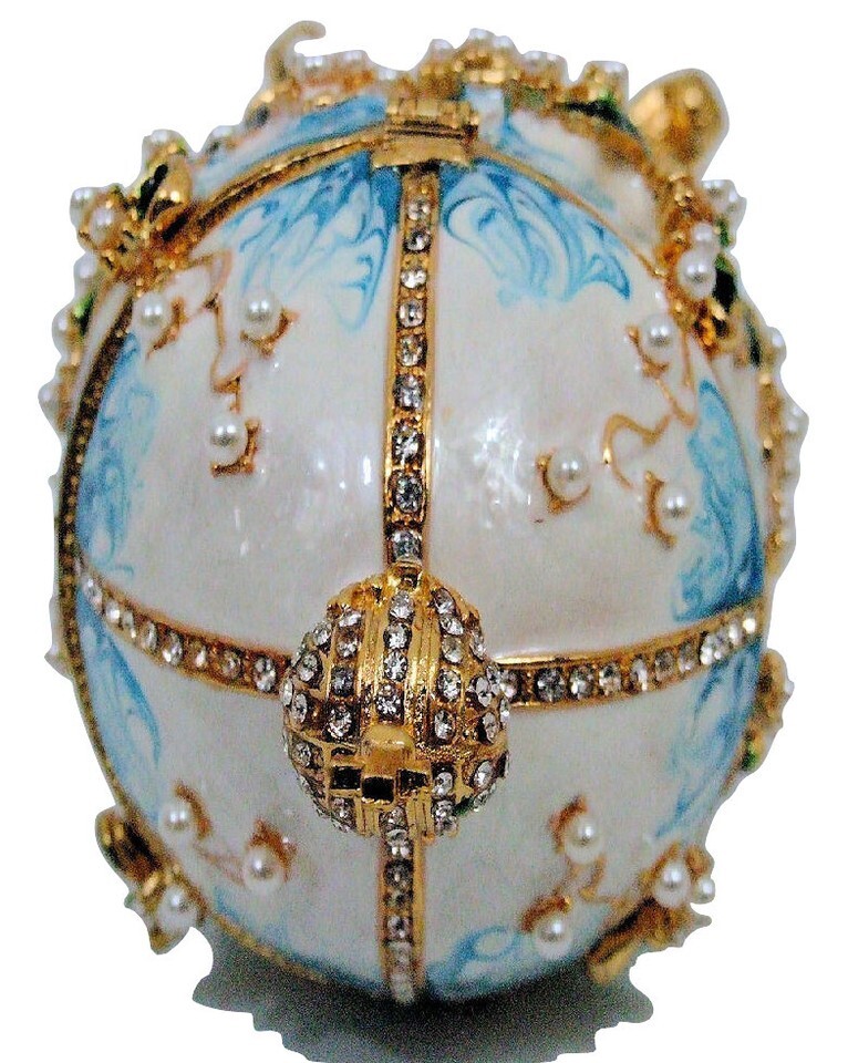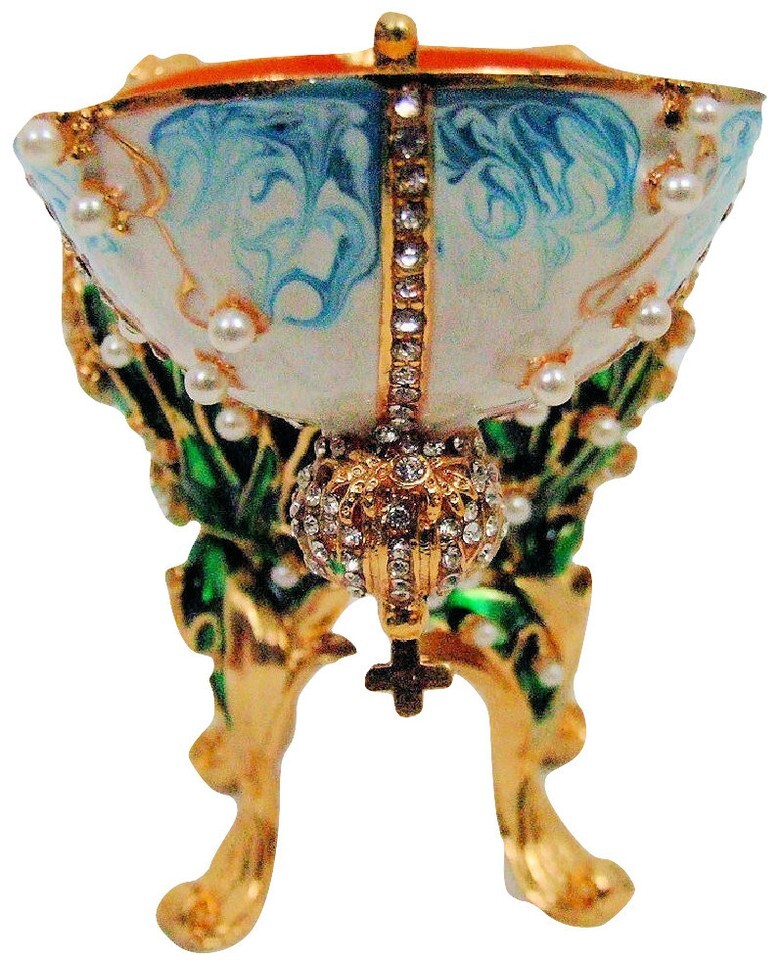 Russian Replica Blue and White Enamel Fabergé Egg "Valley Of Lille"- show ori...