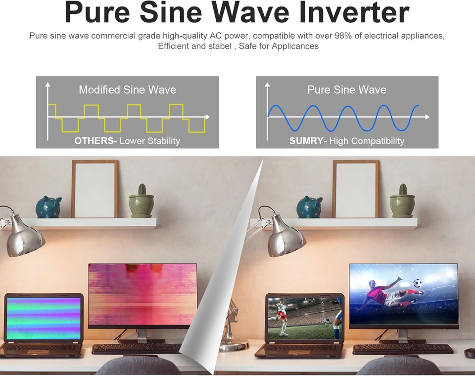 Stable and Efficient: Pure sine wave output, no interference, extends life of your devices, especially sensitive inductive appliances. Build-in 140A MPPT charge controller, max. PV 5600W 350VDC, max. conversion efficiency 98%