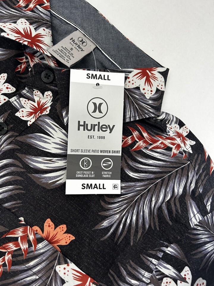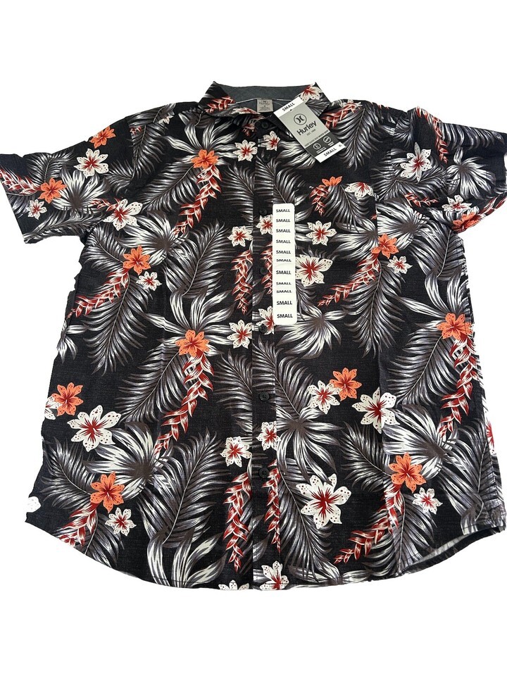 Keywords: Hurley, Floral shirt, Button up shirt, Mens shirt, Short sleeve, Palm tree, Hawaiian shirt, Casual shirt, Beach shirt, Summer shirt, Vacation shirt, Tropical print, Small shirt