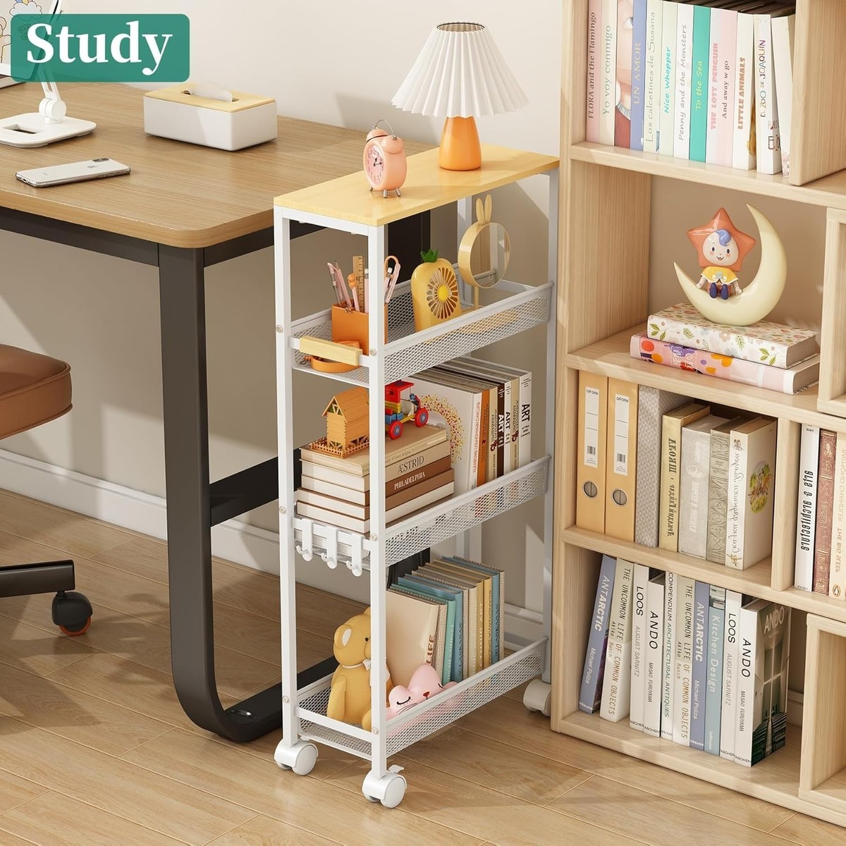 Features: With Shelves,Wheeled,4 Tier,Rust-resistant,Mobile,Guardrails,Slim Design,Space-Saving
