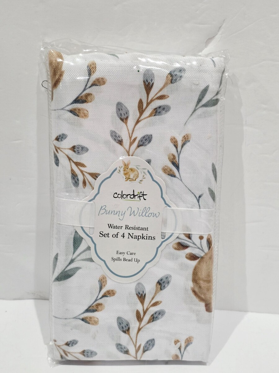 Colordrift Easter Bunny Rabbit Cloth Fabric Bunny Willow Napkins Set of 4
