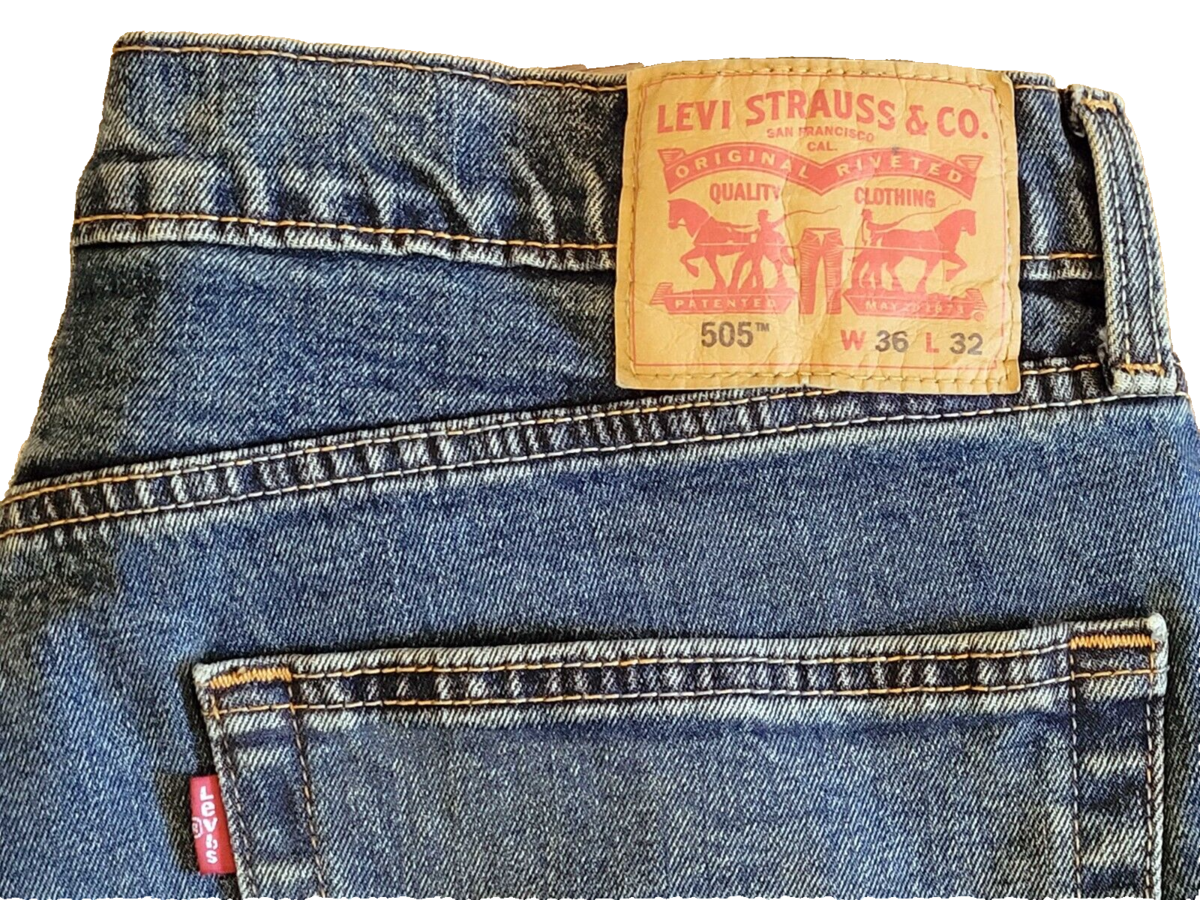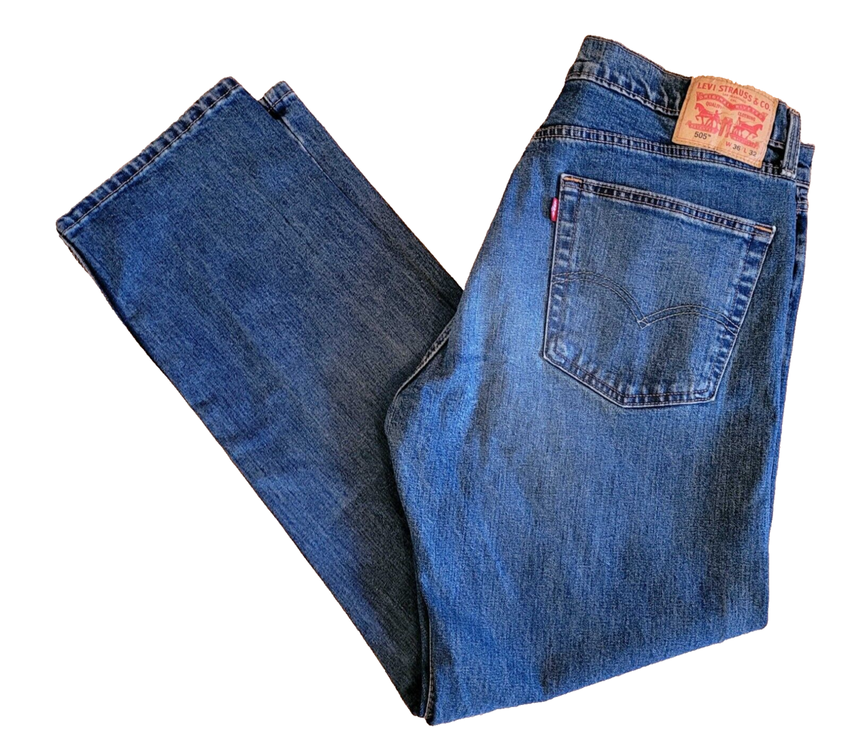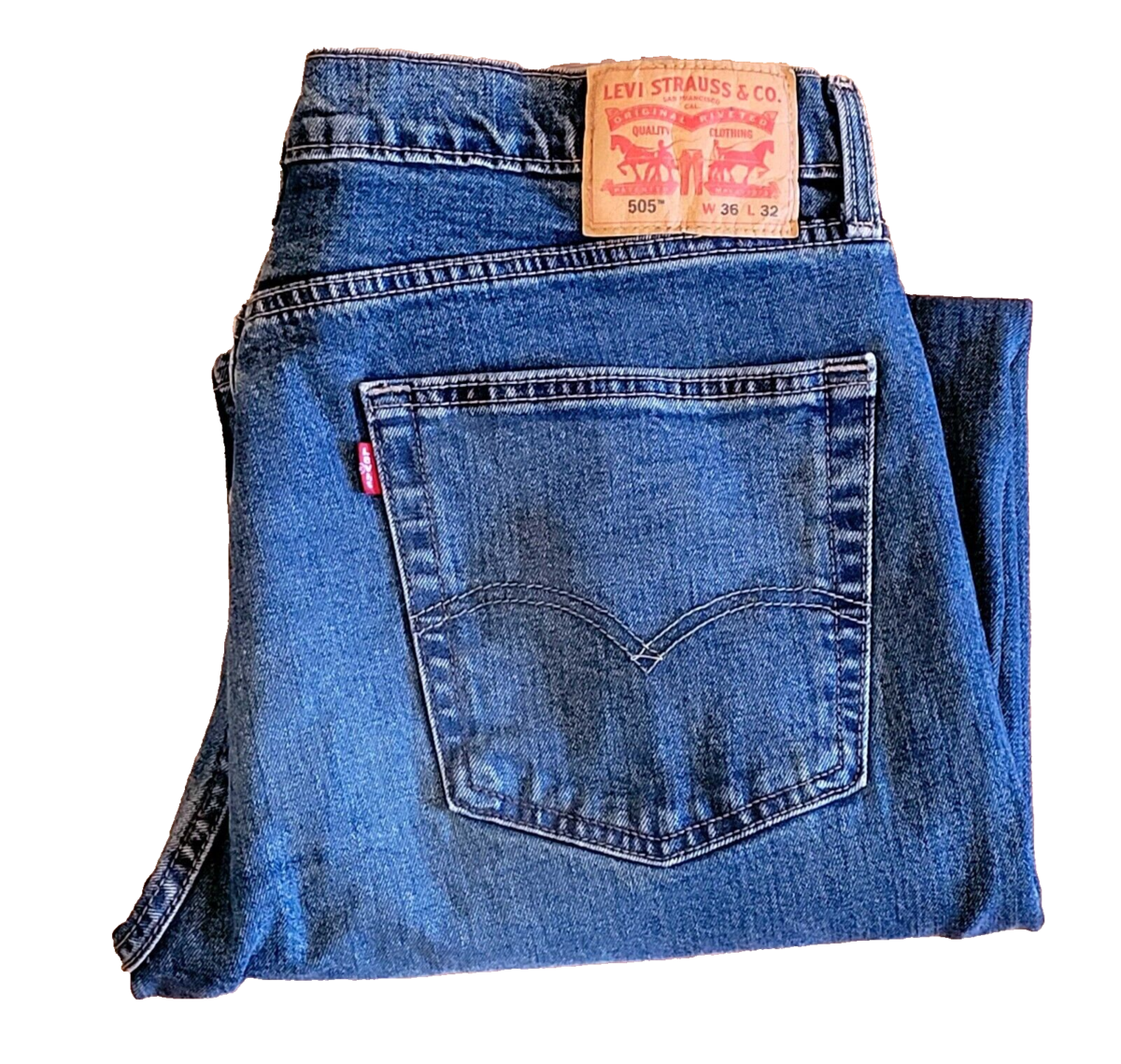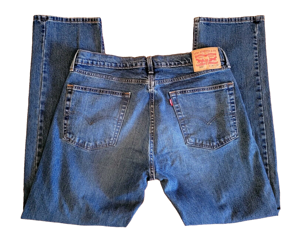 Levis 505 Straight Fit Jeans Blue Flex Denim Red Tab Size 36x32 Zip Fly