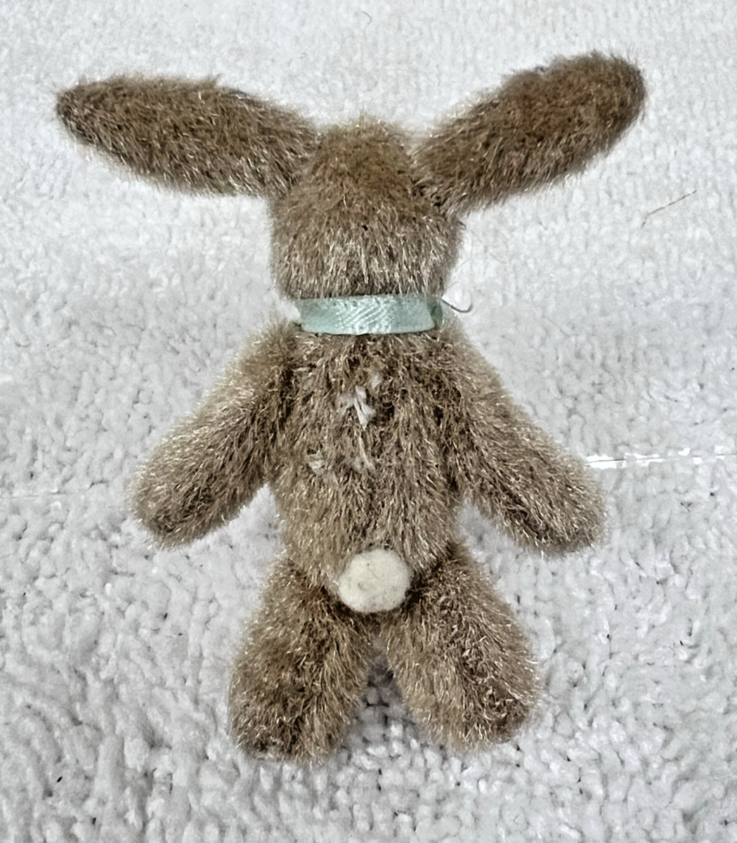 Miniature Dollhouse Toy Fur Floral Fabric Standing Rabbit Bunny Figurine 2 3/8". Floral fabric accented standing rabbit figurine measures approx. 2 3/8" tall, no rips or tears, clean. See pictures.