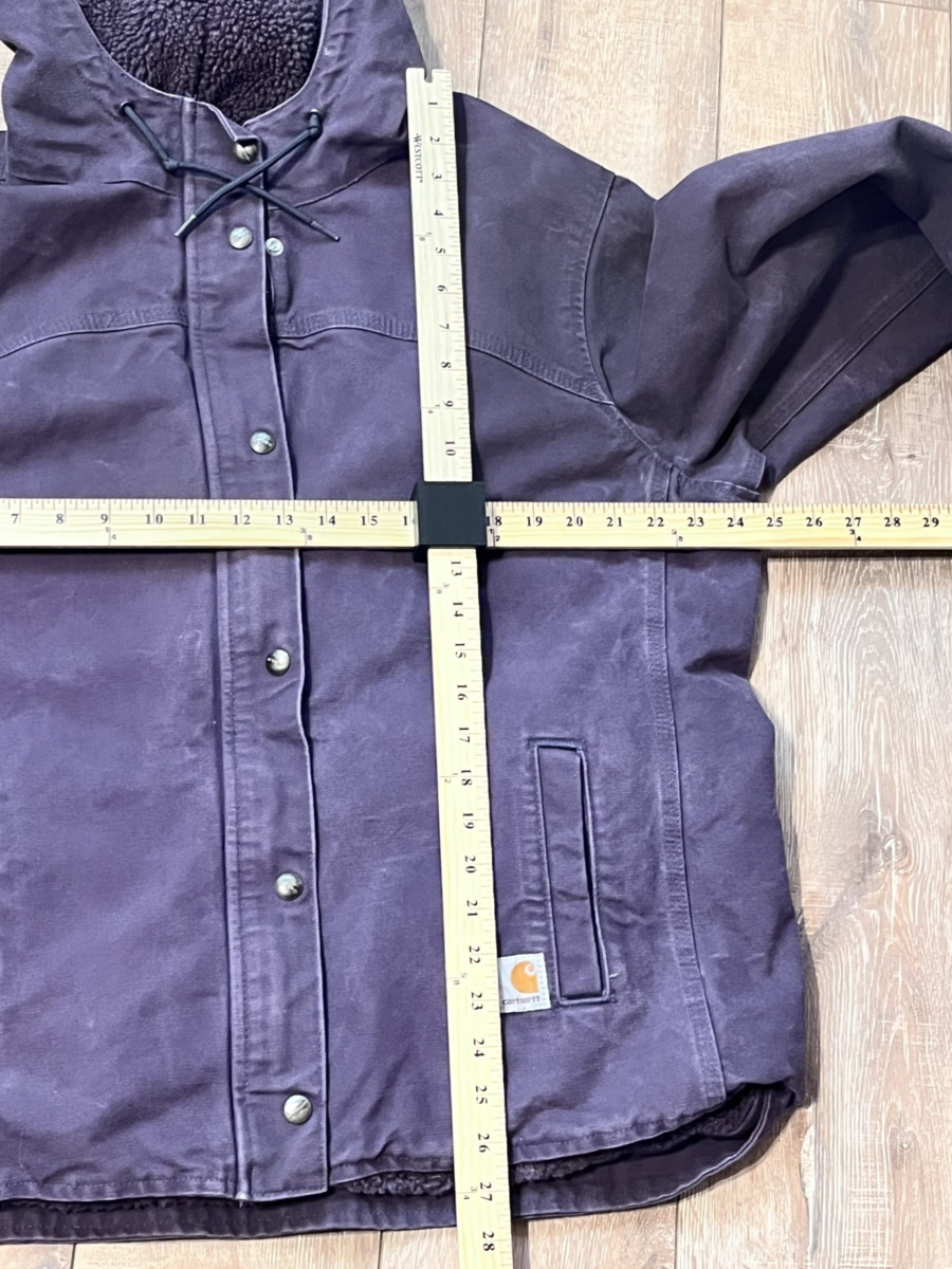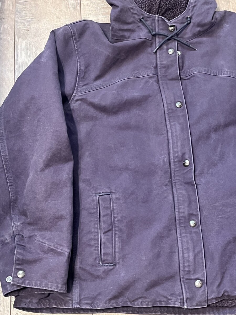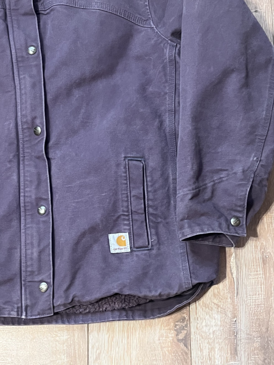 Carhartt Jacket Womens Canvas Dusty Plum Sherpa Lined Hooded XL (16/18) Zip Snap