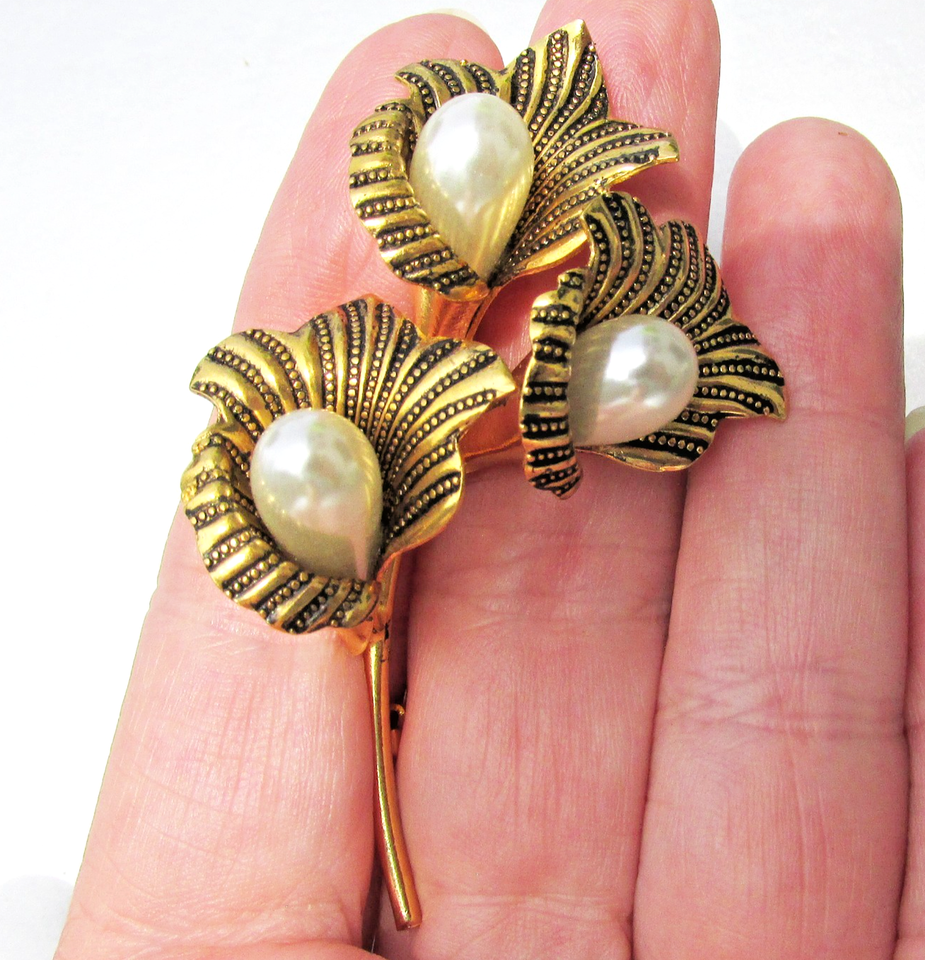Vintage Damascene Enamel & Faux Pearl 3 and 50 similar items