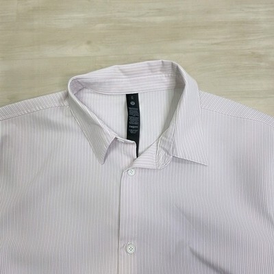 Lululemon New Venture Long Sleeve Shirt Striped Button Shirt Pink White Size XL