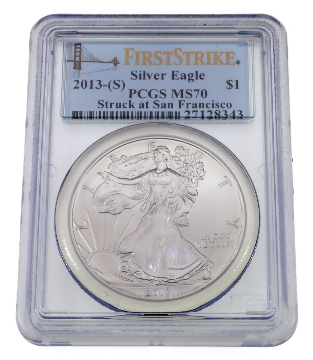 2013 S $1 Plateado American Eagle Graduado Por Calidad Como MS-70 Primer Huelga