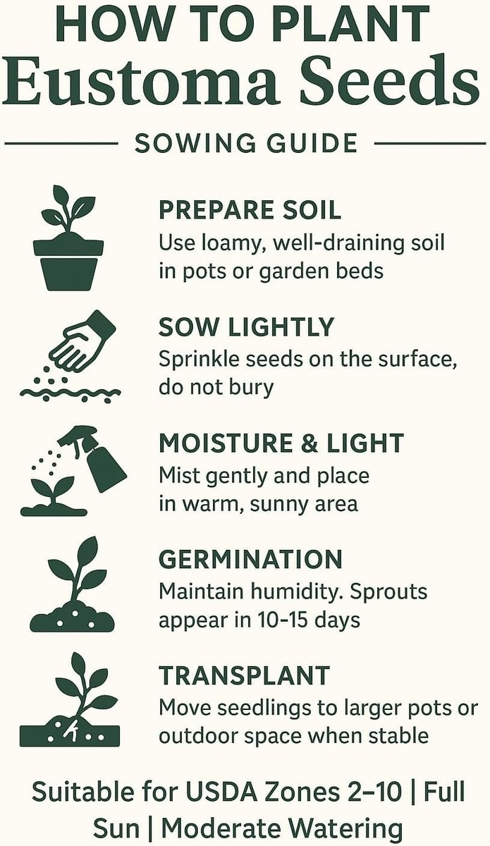 and growing Lisianthus flowers with these Eustoma Grandiflorum seeds, suitable for both novice and experienced gardeners.