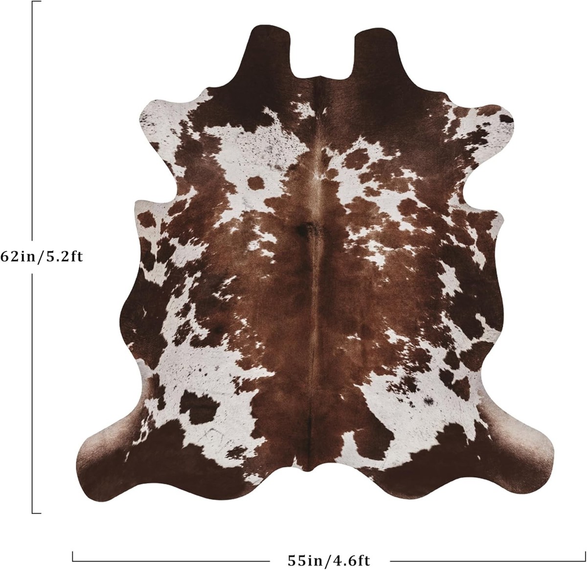 Water Resistant Cow Print Rug 4'6"x5'2" - Stylish Faux Hide for Living Rooms