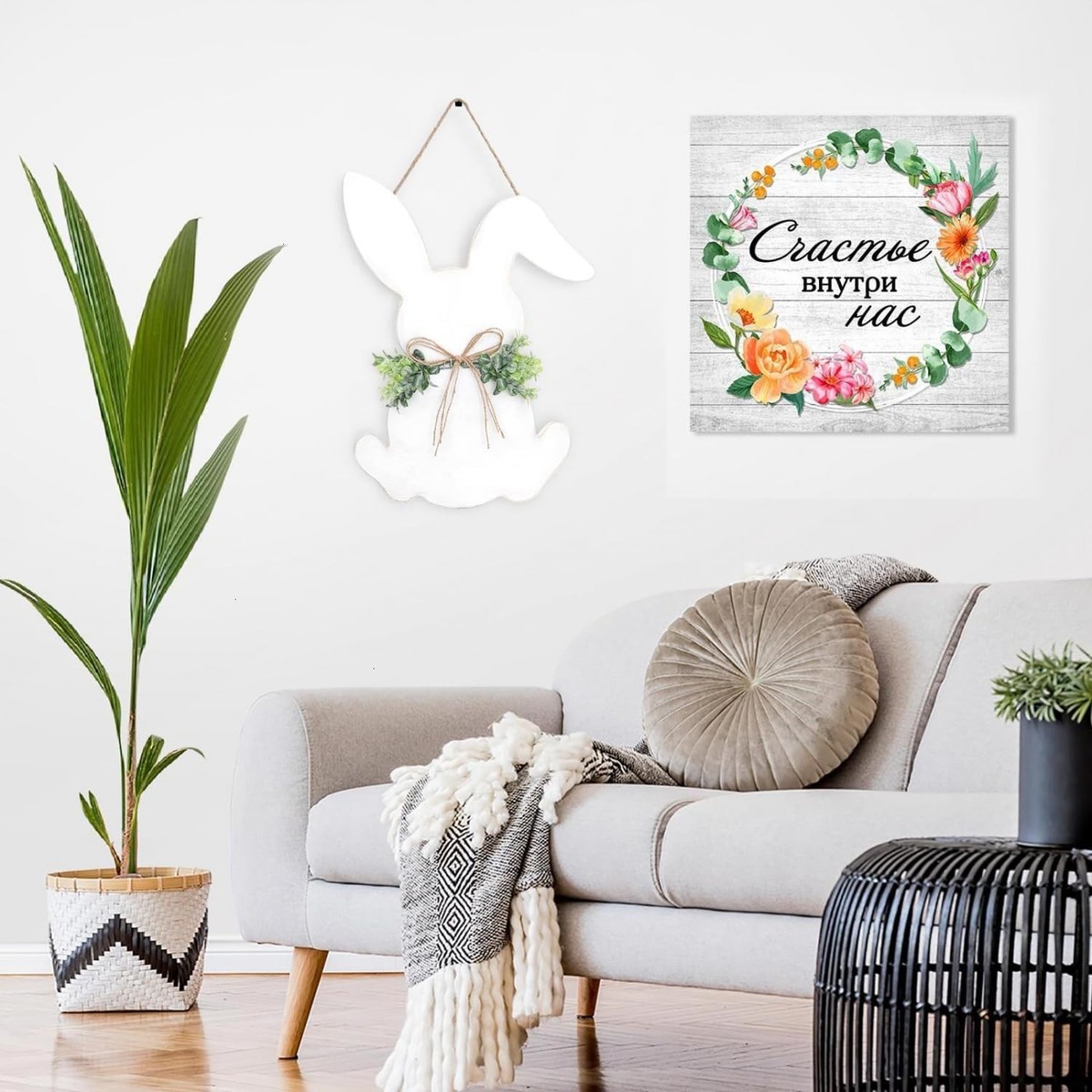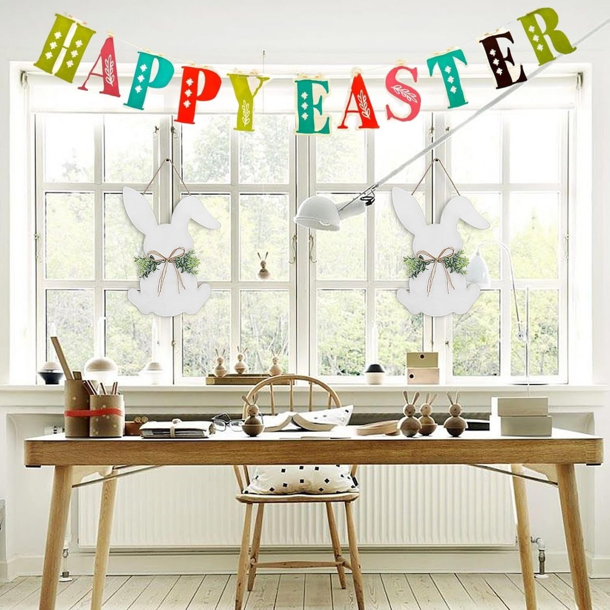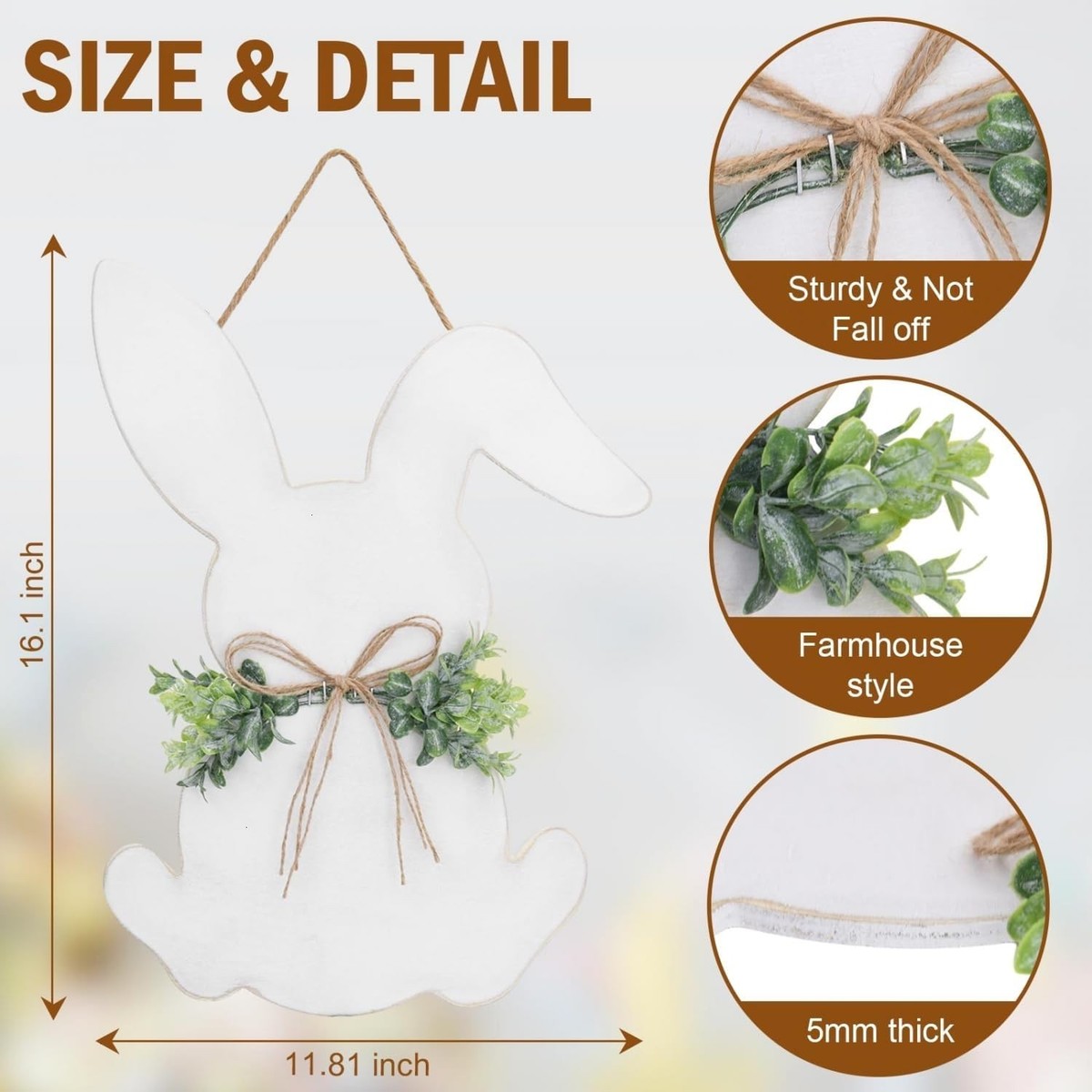 Elegant Rustic Easter Bunny Hanger for Front Door - 16.1 x 11.81 Inch