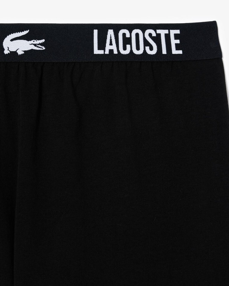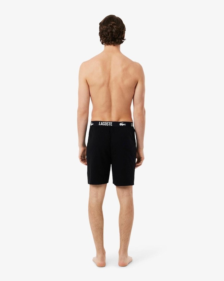 The essential pajama of Lacoste's wardrobe, these stretch jersey pajama shorts offer comfort and elegance along with iconic branding and croc styling on the waistband.