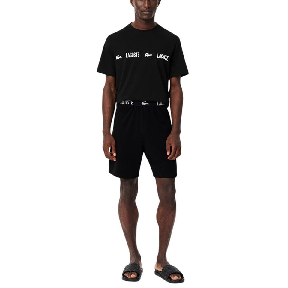 Lacoste Men's Straight Fit Logo Band Pajama Shorts Black-Size Large Cotton Blend