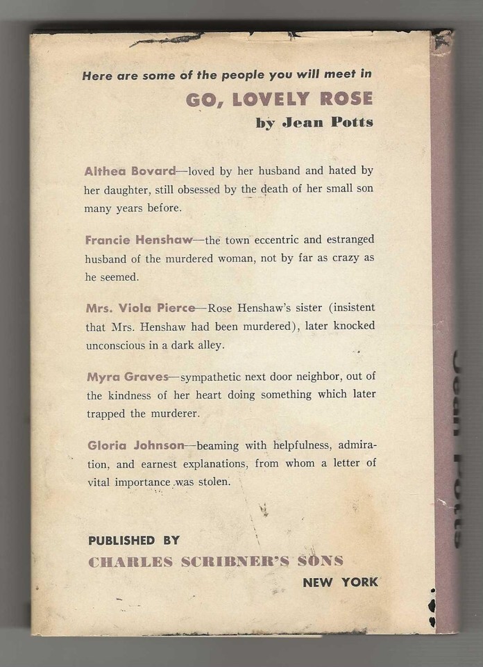 Jean Potts GO LOVELY ROSE First edition 1954 Mystery Rare Edgar Award Winner