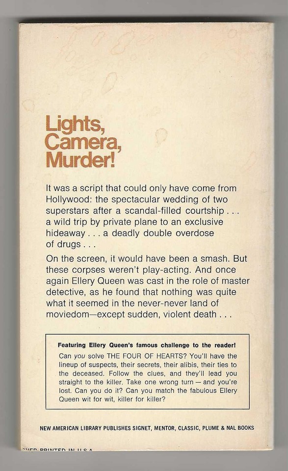 Ellery Queen FOUR OF HEARTS First edition Thus 1970 Mystery Photo Art Paperback