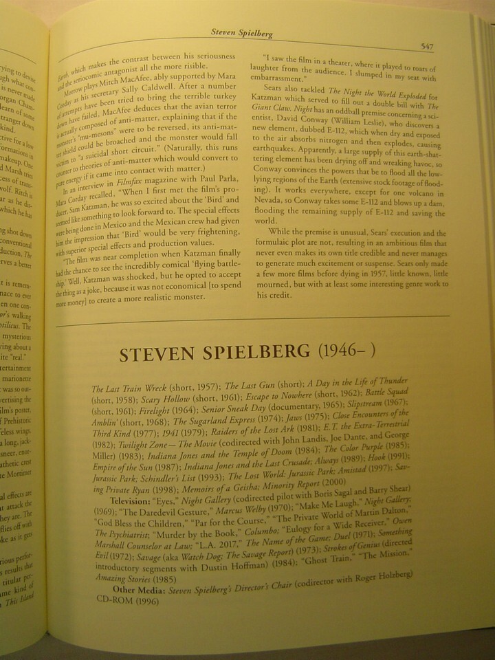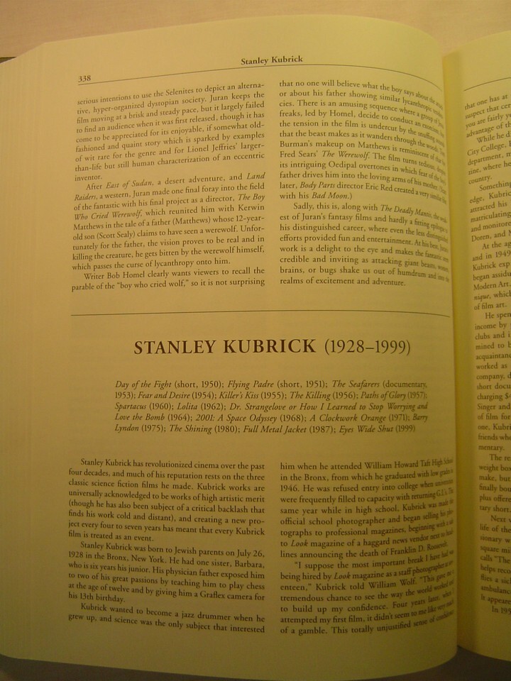 This enormous and exhaustive reference book has entries on every major and minor director of science fiction films from the inception of cinema (circa 1895) through 1998. For each director there is a complete filmography including television work, a career summary, a critical assessment, and behind-the-scenes production information. Seventy-nine directors are covered in especially lengthy entries and a short history of the science fiction film genre is also included.