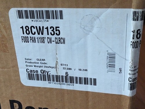 Up for sale is a new case of Of 6 Cambro 18CW135 Camwear Full Size 8" Deep Polycarbonate Food Pan.