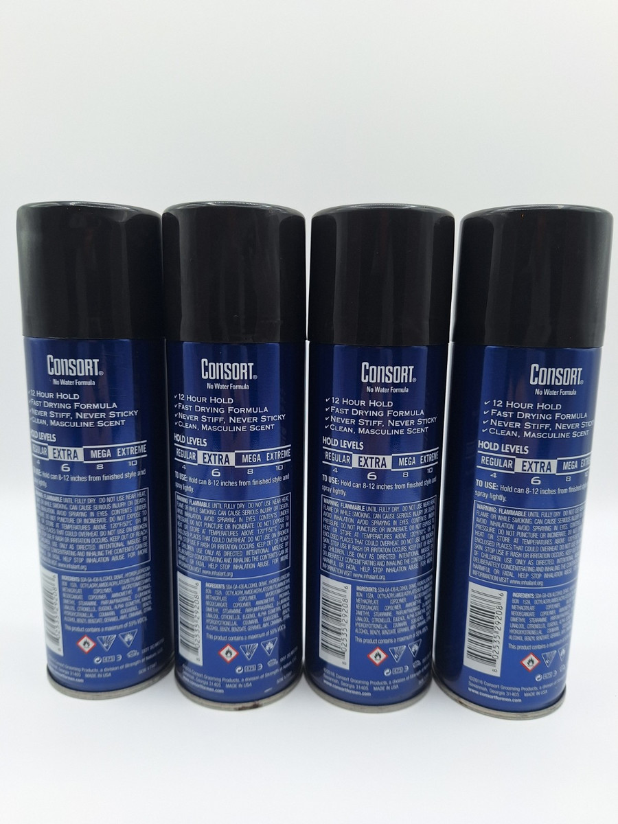 Consort Aerosol Hair Spray for Men Extra Hold 8.3 oz 4 Pack NEW