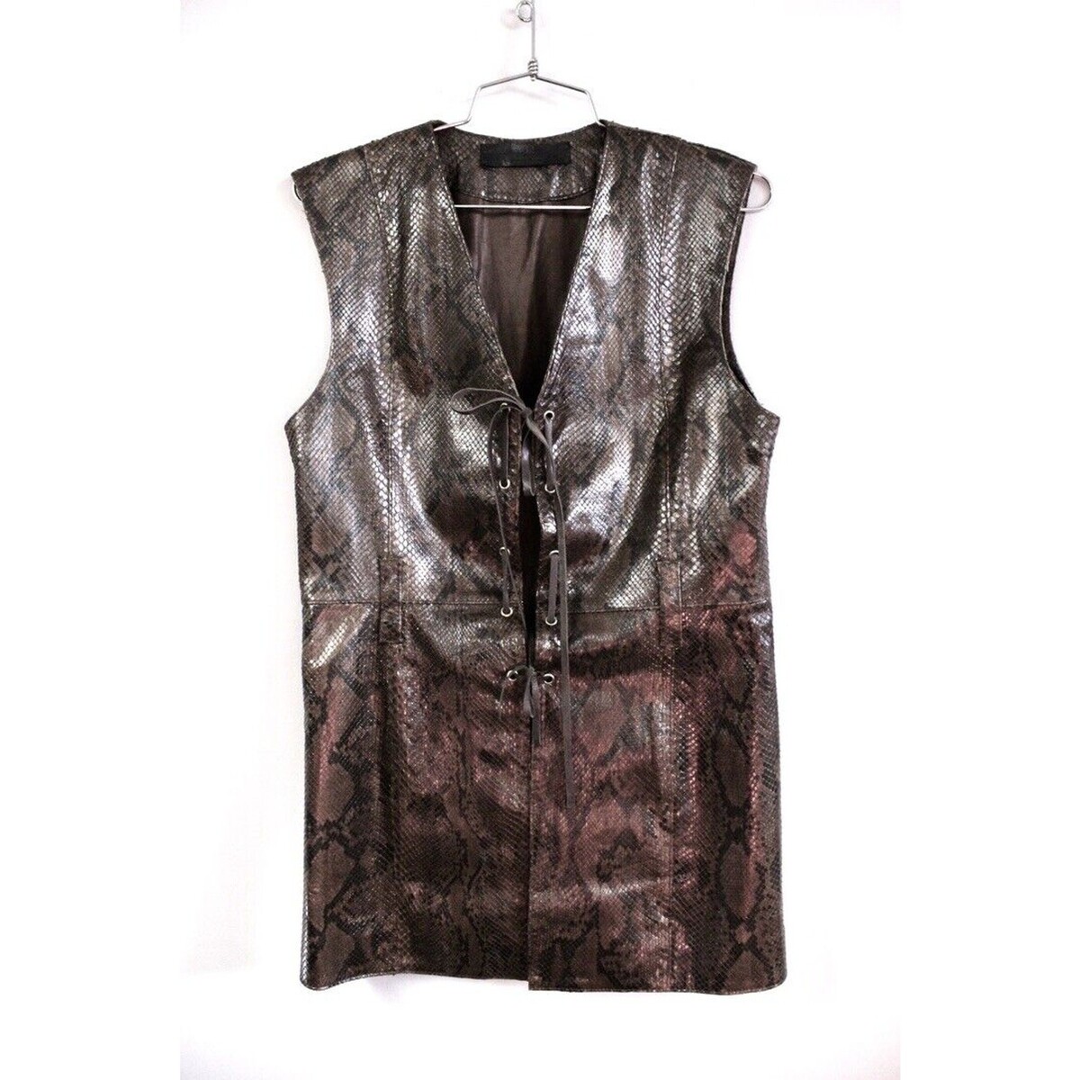 Victoria Rosa St Tropez Genuine Python Leather Lace Front Tunic Vest M Luxe