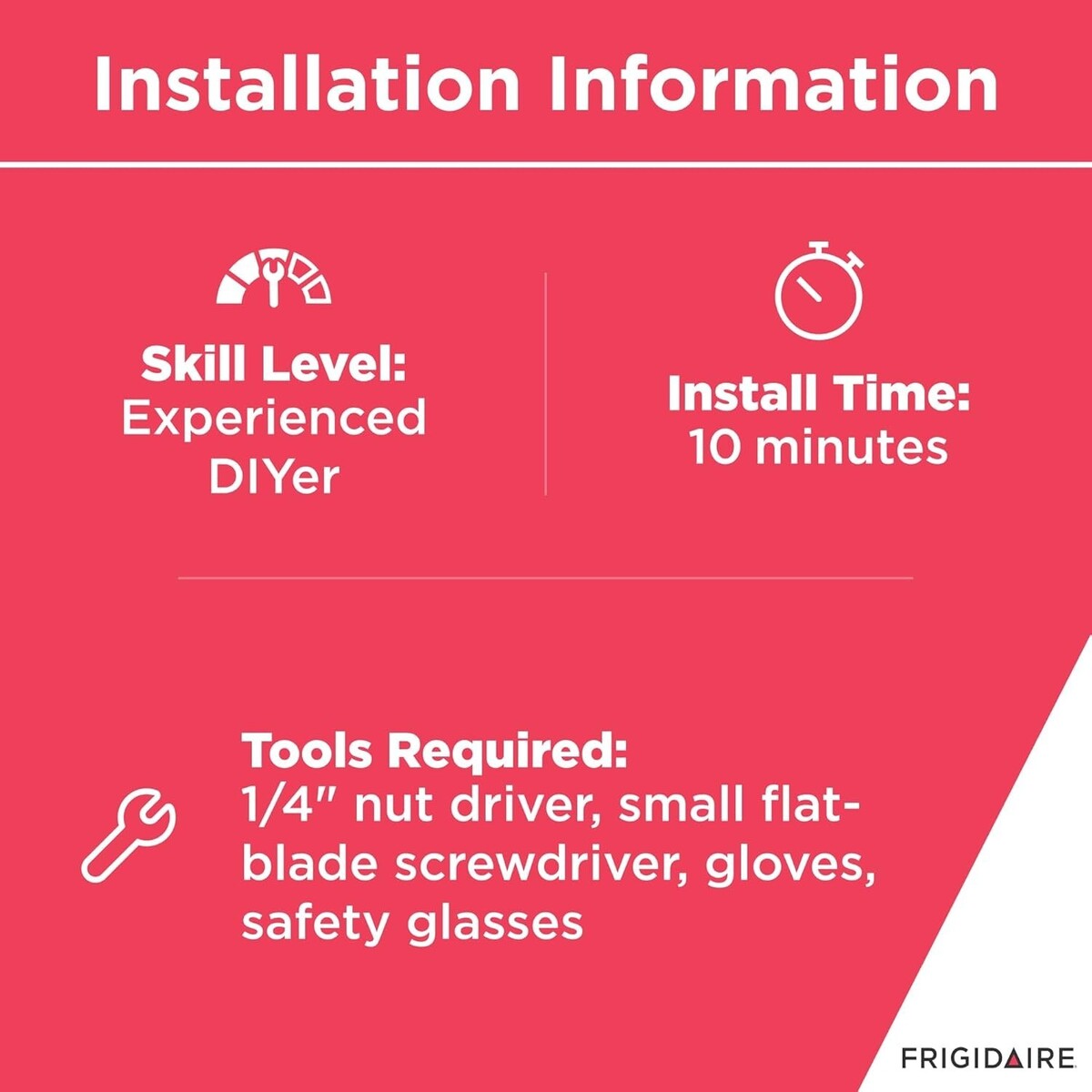 Tools Required: To install this item, you'll need the following: 1/4" nut driver, small flat-blade screwdriver, gloves, safety glasses