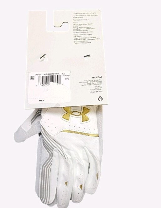Under Armour Youth Batting Gloves White And Gold Logo Size OSFM New With Tags