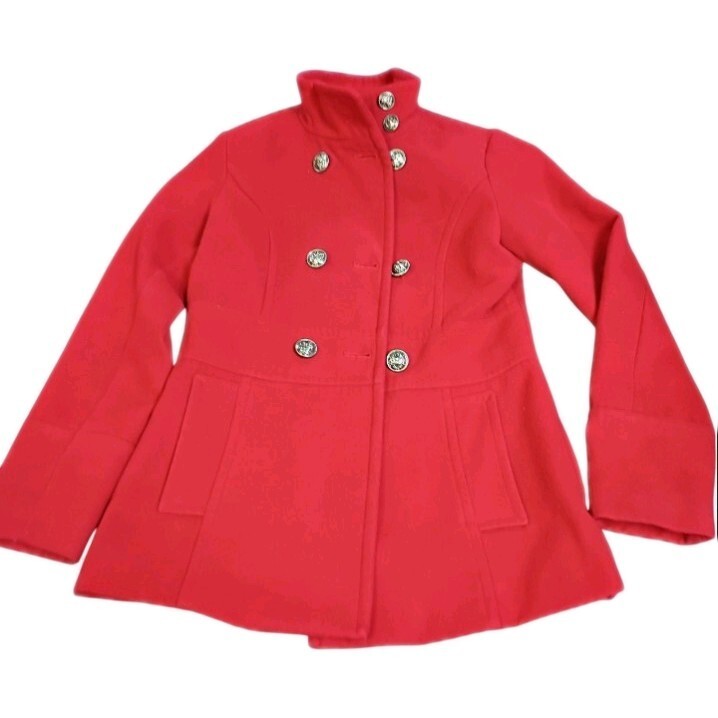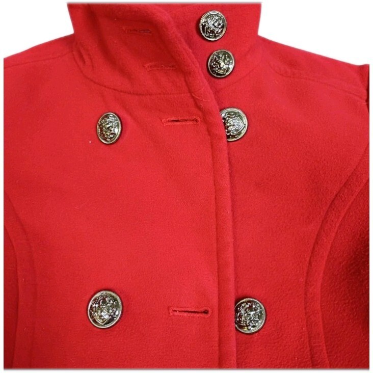 Red Liz Claiborne Double Breasted PeaCoat with Silver Buttons Size Small