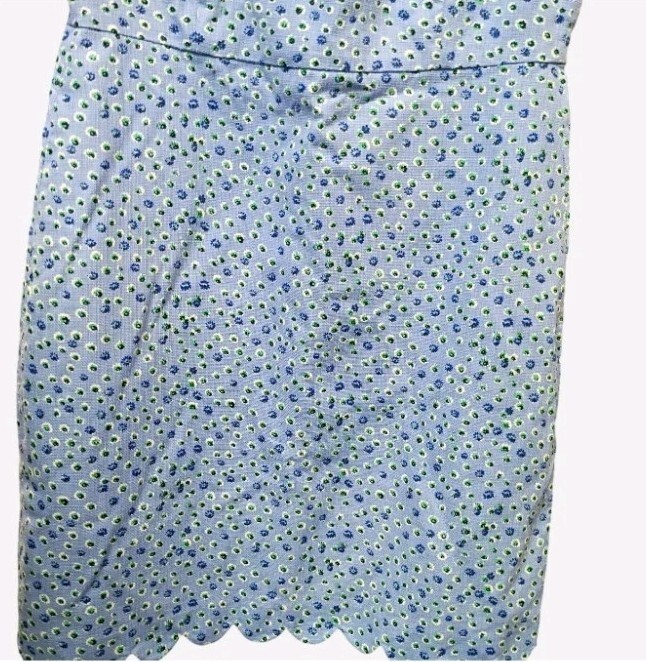 Blue Floral J.Crew Dress With Scalloped Hem And Side Zipper Closure Size 12