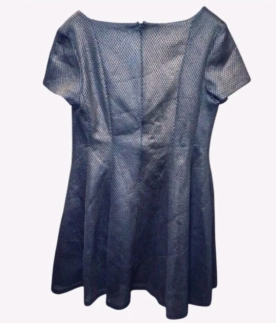 The Lane Bryant Metallic Mesh Brown Black and Gold Fit and Flare Dress in size 16 is a stylish and sophisticated choice for any woman's wardrobe. Made from polyester mesh fabric, this knee-length dress features a round neckline, short sleeves, and a flattering fit and flare silhouette. The brown color with metallic accents adds a touch of glamour, making it perfect for various occasions from casual outings to evening events. Stand out in this fashionable dress from a trusted brand like Lane Bryant, designed for women who appreciate both style and comfort.