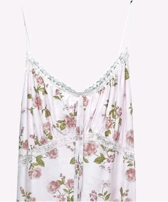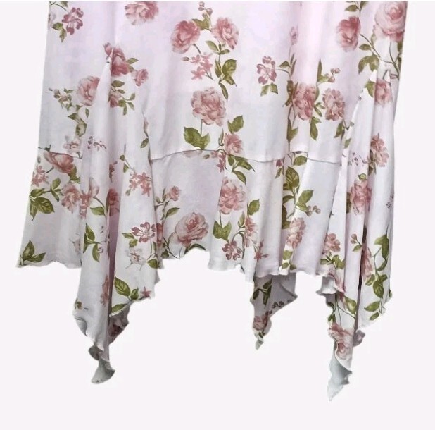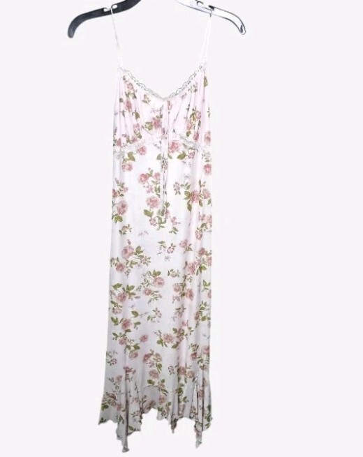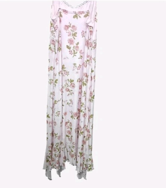 Madrag Pink Floral Maxi Dress Adjustable Straps, Lace Trim & Ruffle Hem Size L