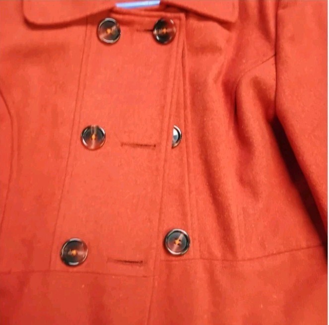 Orange Robert Louis Wool Double Breasted Coat w/Faux Tortoise Buttons Size Med