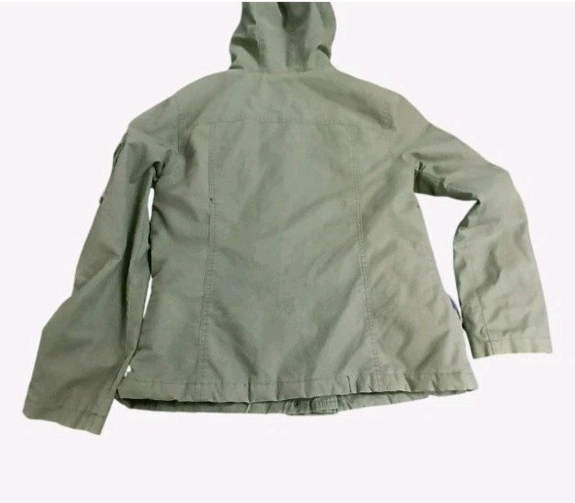 The Y2K Hunter Green Hollister Coat is a stylish and classic women's coat designed by Hollister. The coat features a rich hunter green color, perfect for adding a pop of color to any outfit. Sleeves have some discoloration. One visible repair on the back panel. Made for women, this coat is a versatile and fashionable addition to any wardrobe. Designed with quality and style in mind, this Hollister coat is a must-have for those looking for a chic and practical outerwear option.