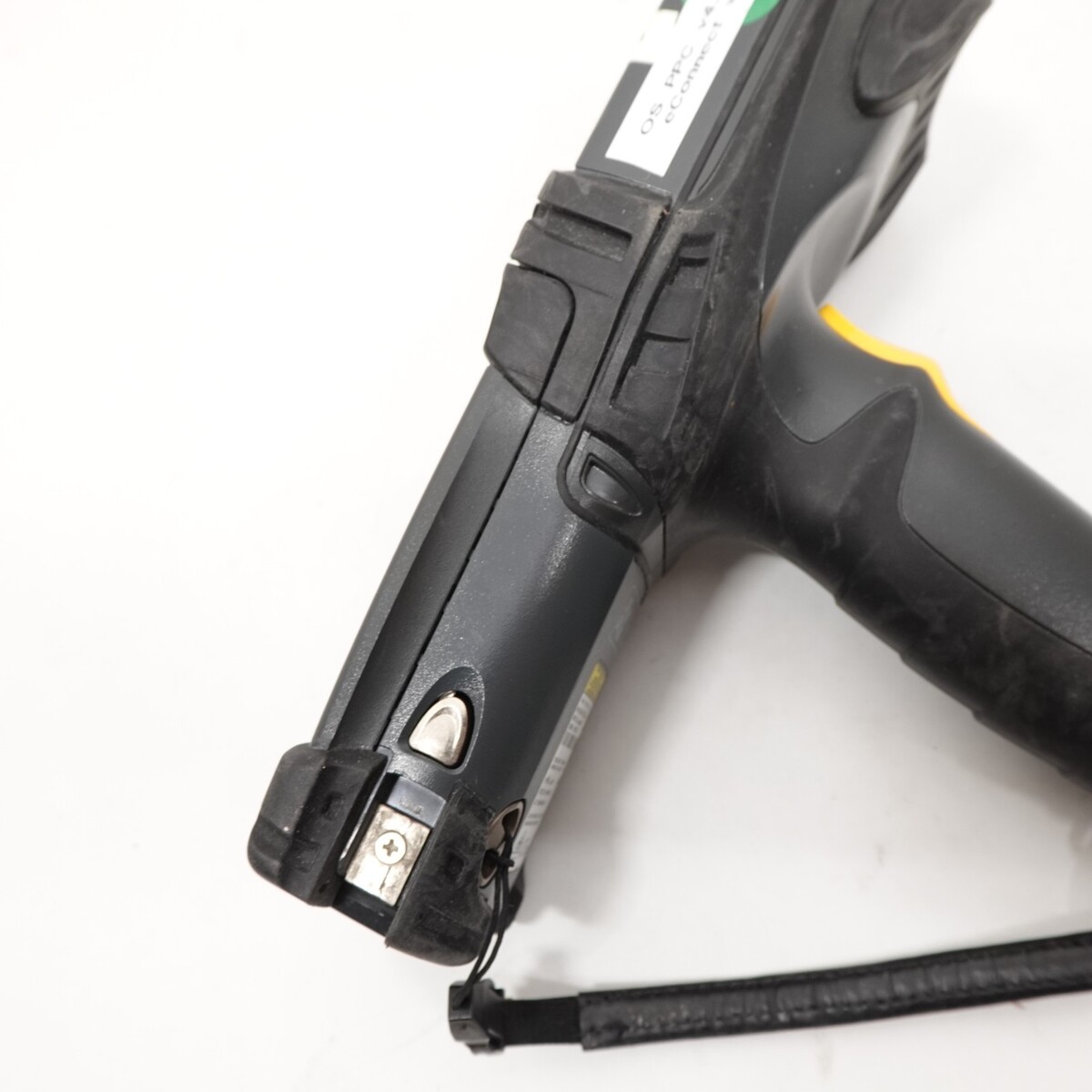 Unit has been power-tested and boots up successfully. Battery is included, but a charger/cradle is not included, so full functionality and scanning were not tested further. Screen and keypad are responsive and intact. Shows typical cosmetic wear from industrial use. Sold as shown.