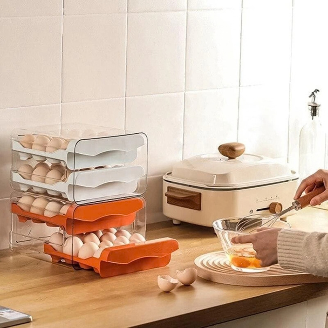 This practical double-layer egg storage box helps organize your refrigerator while protecting eggs from cracks and damage. The compact and stackable design makes it ideal for keeping your kitchen neat and saving space.