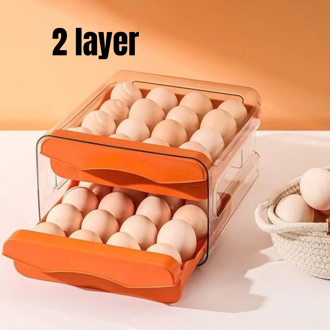 32 Slots Double Layer Egg Storage Box with Lid – Stackable Refrigerator Egg Holder Organizer, Sliding Drawer Design.