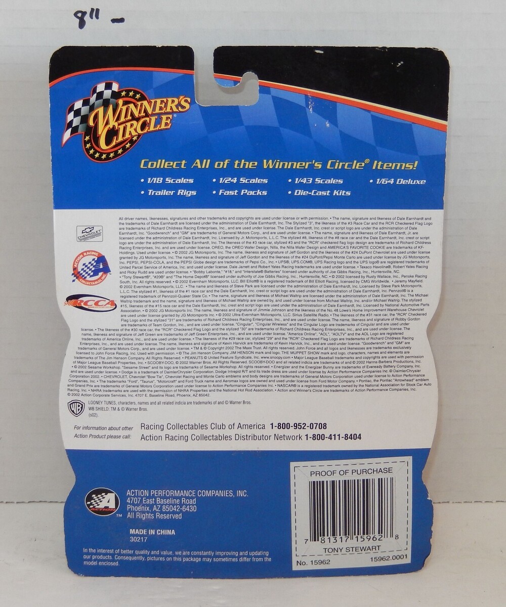 For Sale is a rare and hard to find 2002 Action Winners Circle 1:64 Tony Stewart DIE-CAST Home Depot. In Good condition as pictured. would make a wonderful addition to any Toy collection. Please ask Any and All Questions prior to purchasing. Fast Same or Next day shipping with Free Delivery Confirmation within the U.S. Payment Due within 7 days of purchase (if you need more time please let us know In advance) we love to combine shipping is always a Yes and Most of the time Additional Items Ship for free. SKU4MS