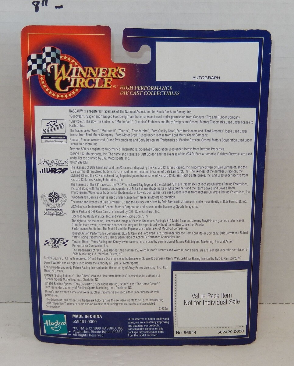 For Sale is a rare and hard to find 1999 Hasbro Winners Circle 1:64 Bobby Labonte DIE-CAST Joe Gibbs Racing. In Good condition as pictured. would make a wonderful addition to any Toy collection. Please ask Any and All Questions prior to purchasing. Fast Same or Next day shipping with Free Delivery Confirmation within the U.S. Payment Due within 7 days of purchase (if you need more time please let us know In advance) we love to combine shipping is always a Yes and Most of the time Additional Items Ship for free. SKU4MS