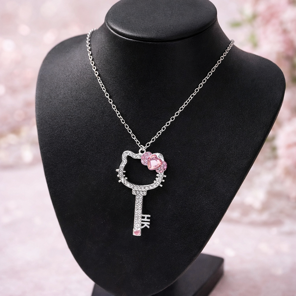 hello kitty necklace, hello kitty key necklace, sanrio jewelry, y2k hello kitty, kawaii necklace, hello kitty rhinestone, pink key necklace, hello kitty aesthetic, coquette jewelry, y2k jewelry, harajuku style necklace, hello kitty gift, swarovski hello kitty, sanrio official, 90s style jewelry, 90s aesthetic, gifts for mom, gifts for daughter, gifts for girlfriend, gifts for wife.