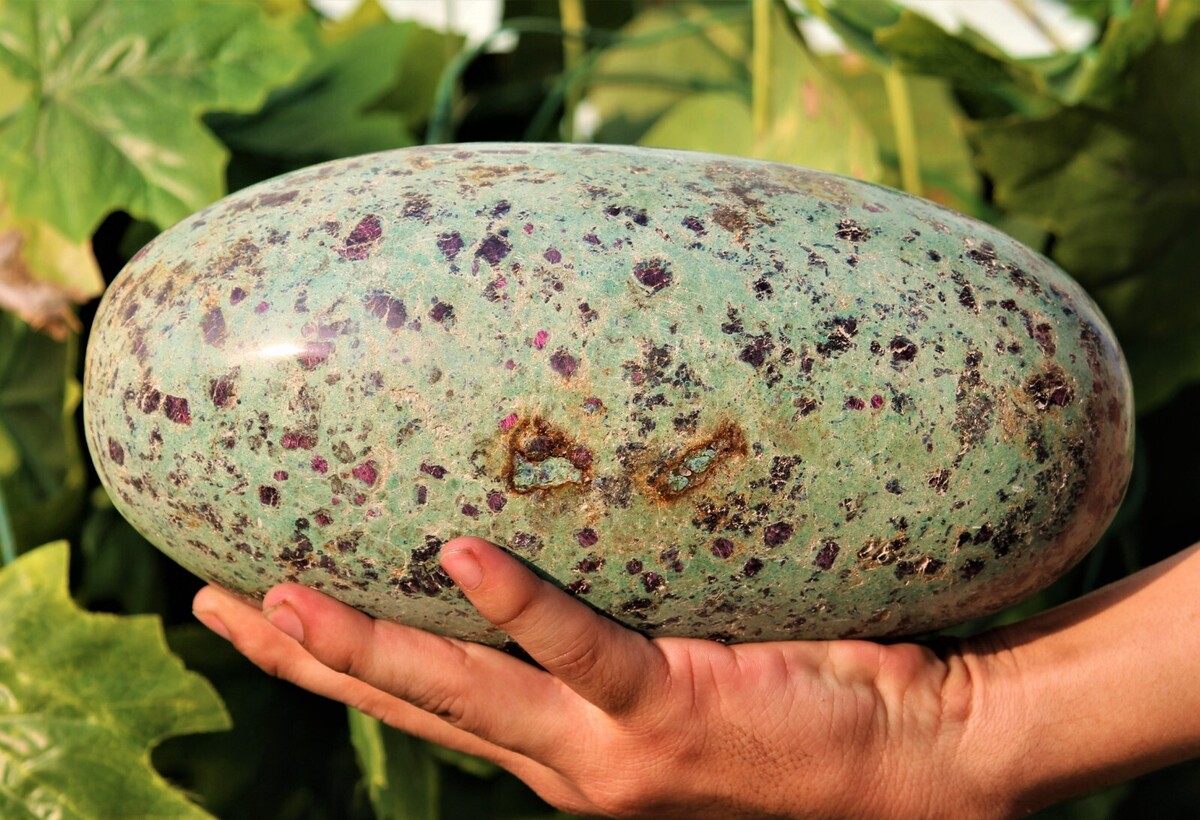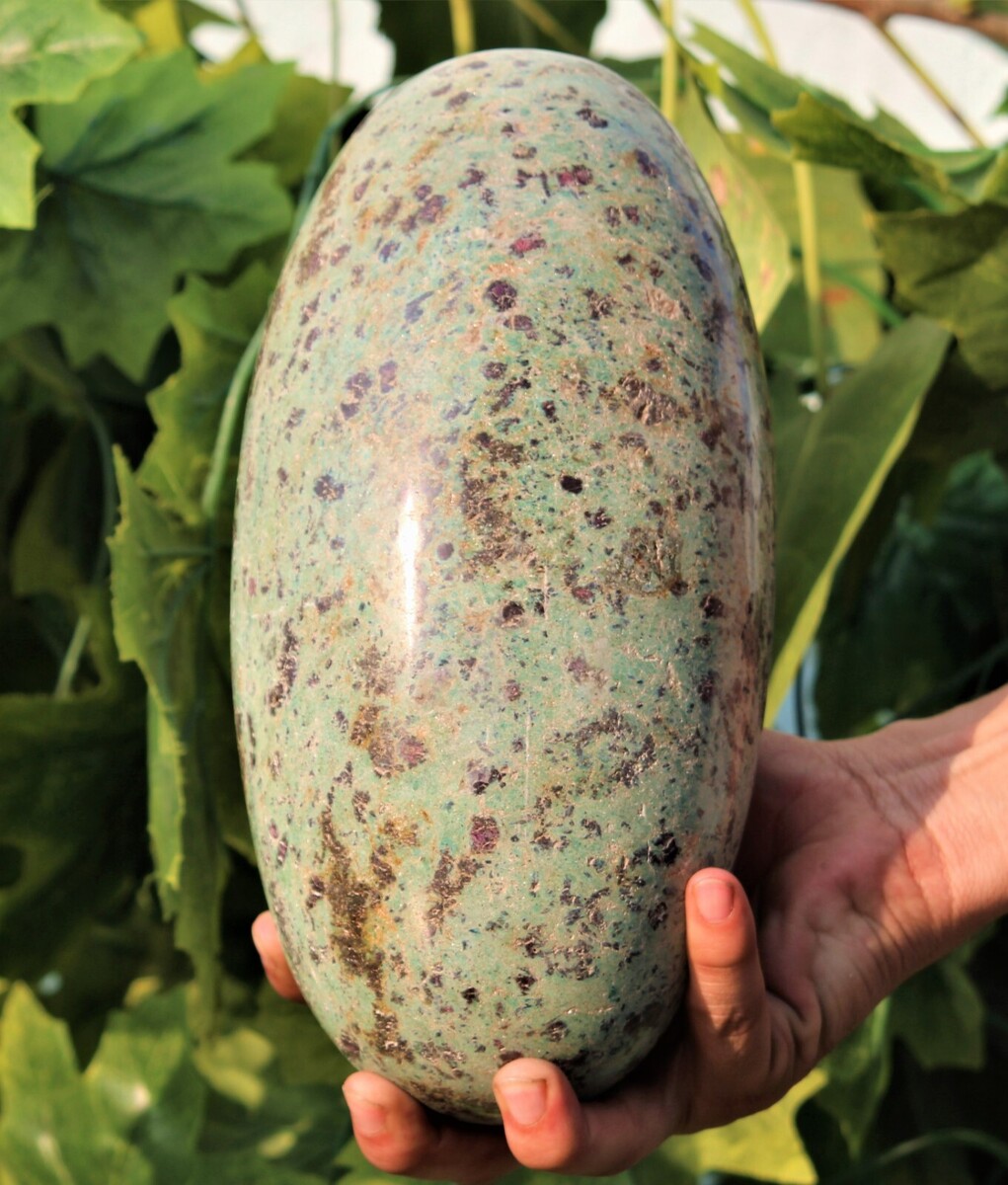 Hermoso enorme 250x100MM pulido Rubí verde fucsita Muestra de lingam de piedra curativa de cristal para curacion, fengshui, reiki, aura, meditacion, metafísica, decoracion y minerales.