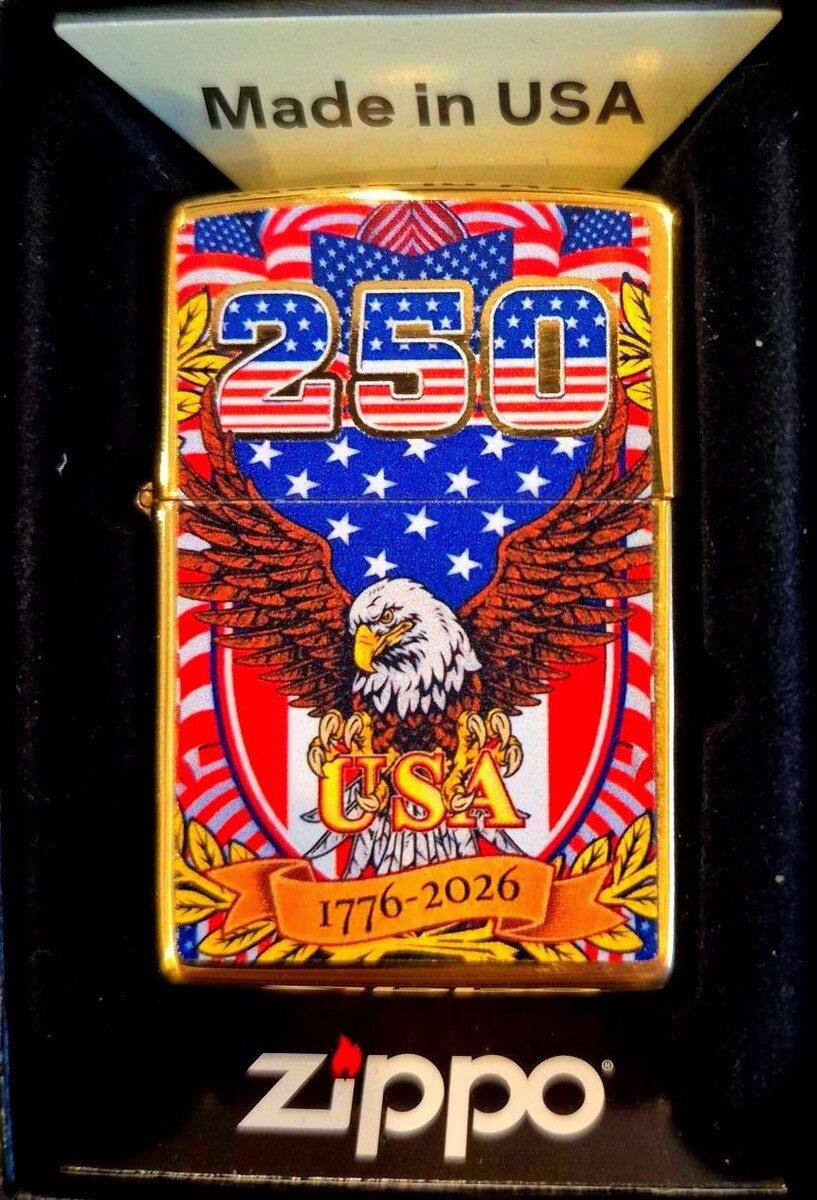 The Special Polished Brass USA 250th Anniversary 1776-2026 Zippo Lighter is a collectible item that commemorates a significant milestone in American history. Made by the renowned brand Zippo, this lighter features a patriotic theme with a brass construction, making it a durable and stylish piece. This limited edition item serves as a reminder of the country's founding and the tradition of American craftsmanship. Perfect for collectors or as a unique gift for any Zippo enthusiast.