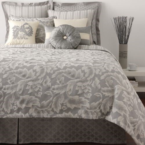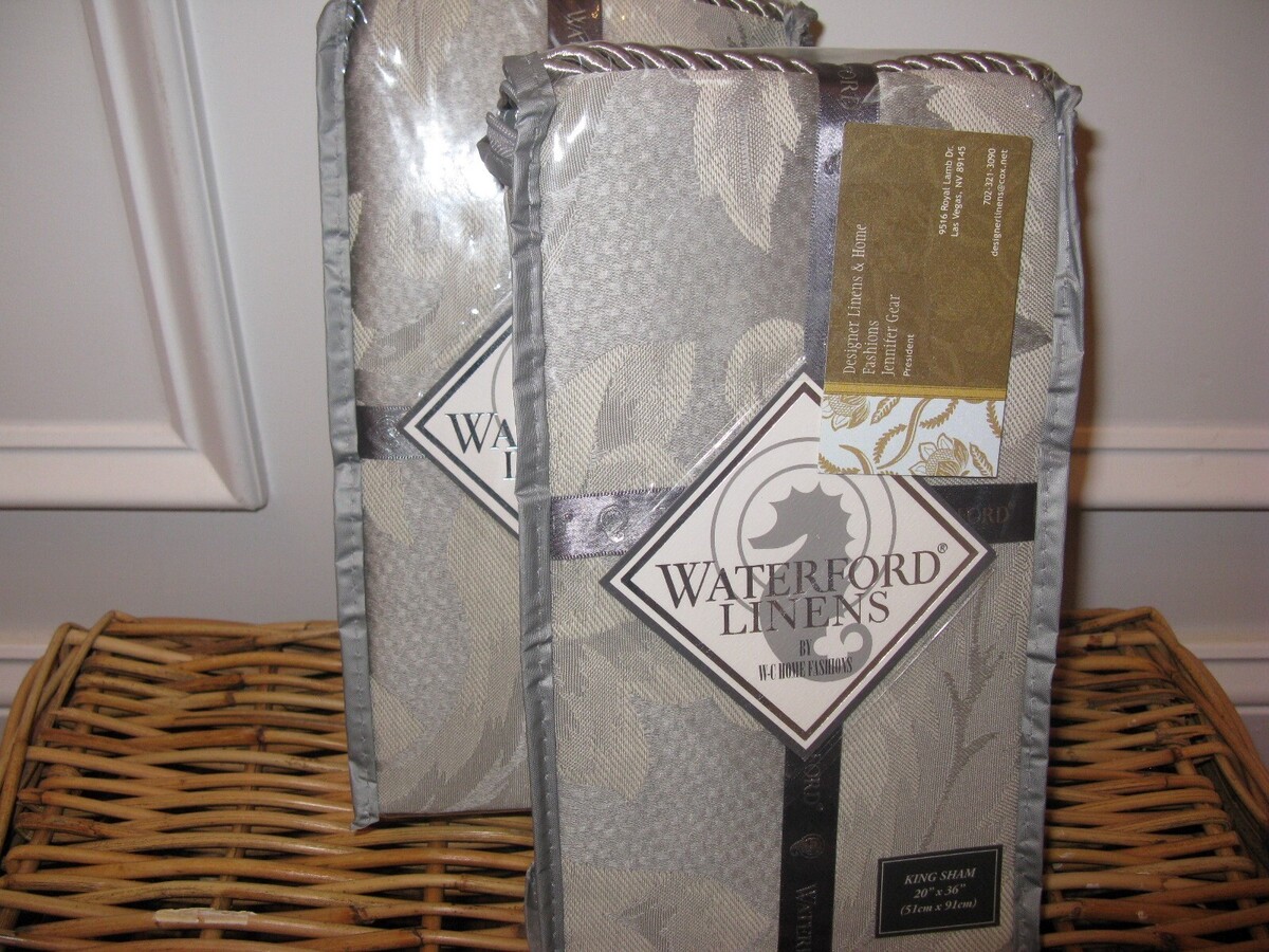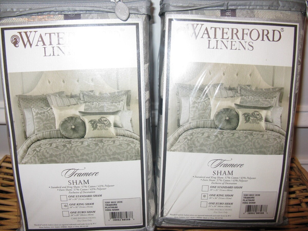 Waterford TRAMORE ALDRICH 4p King duvet Cover Shams Pillows Platinum Acanthus